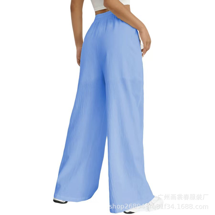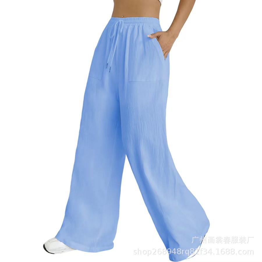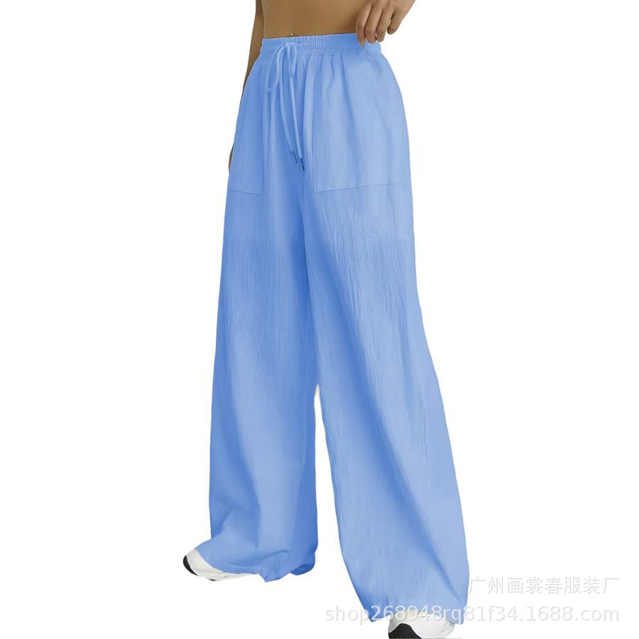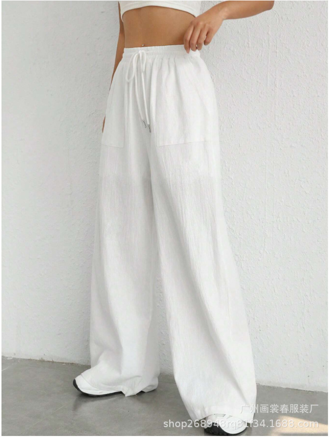 아마존 해외 무역 유럽 및 미국 여성 캐주얼 솔리드 컬러 드로스트링 스트레이트 마이크로 플레어 포켓 캐주얼 팬츠 캐주얼 패션