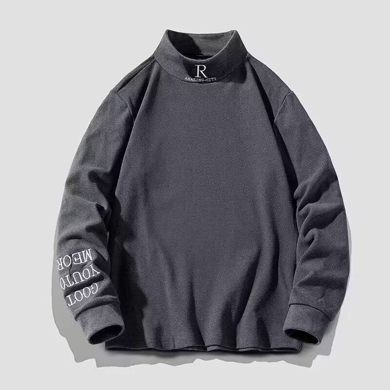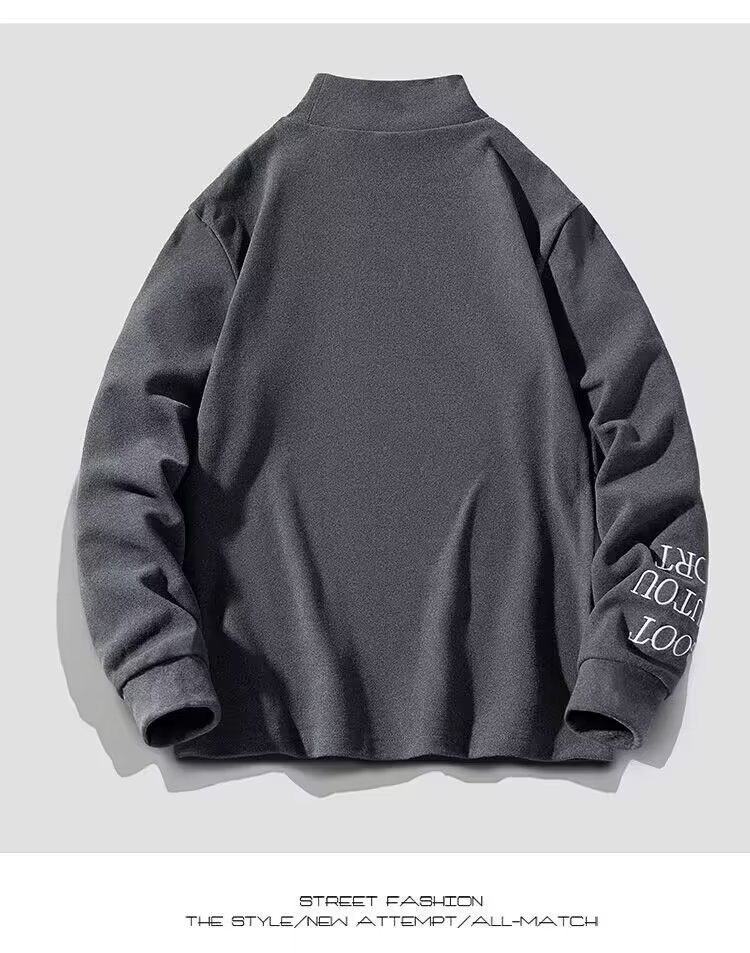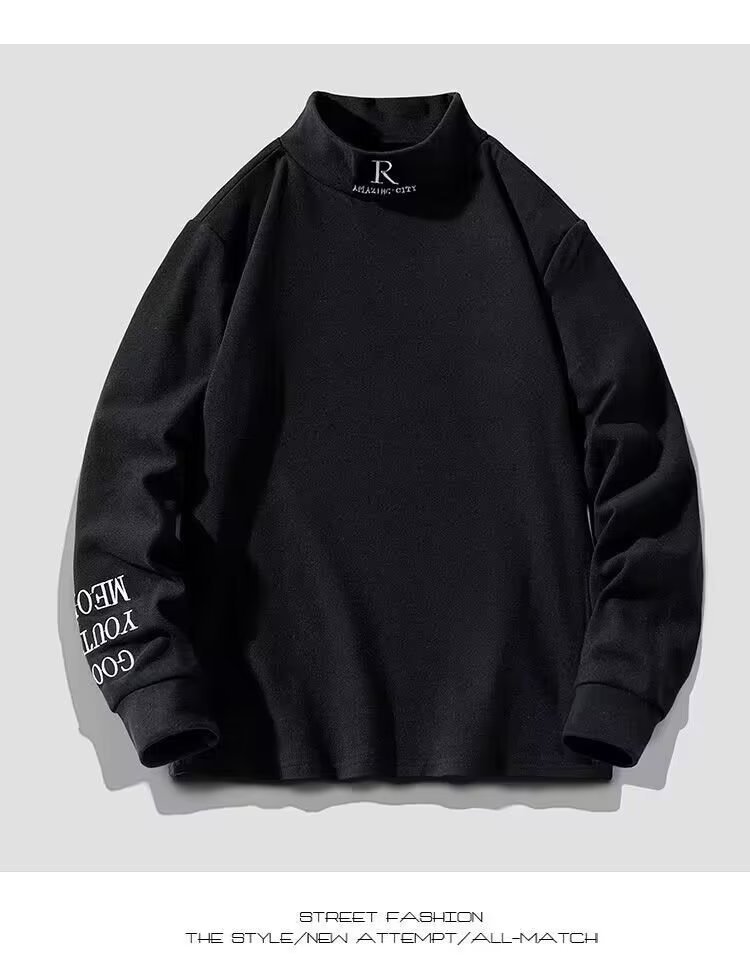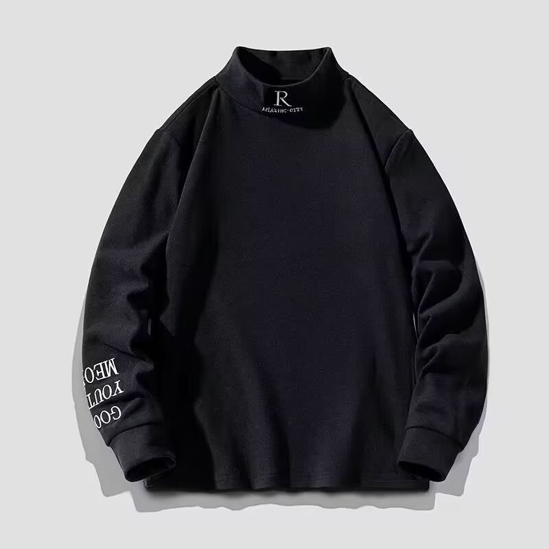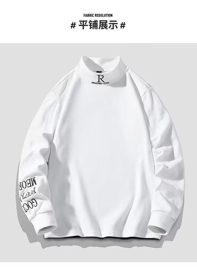 양면 벨벳 하프 터틀넥 바닥 셔츠 남성 고급 가을과 겨울 미국 복고풍 따뜻한 미드 칼라 내부 긴팔 티셔츠