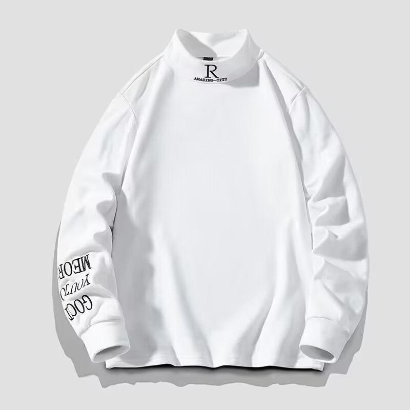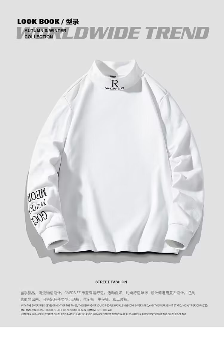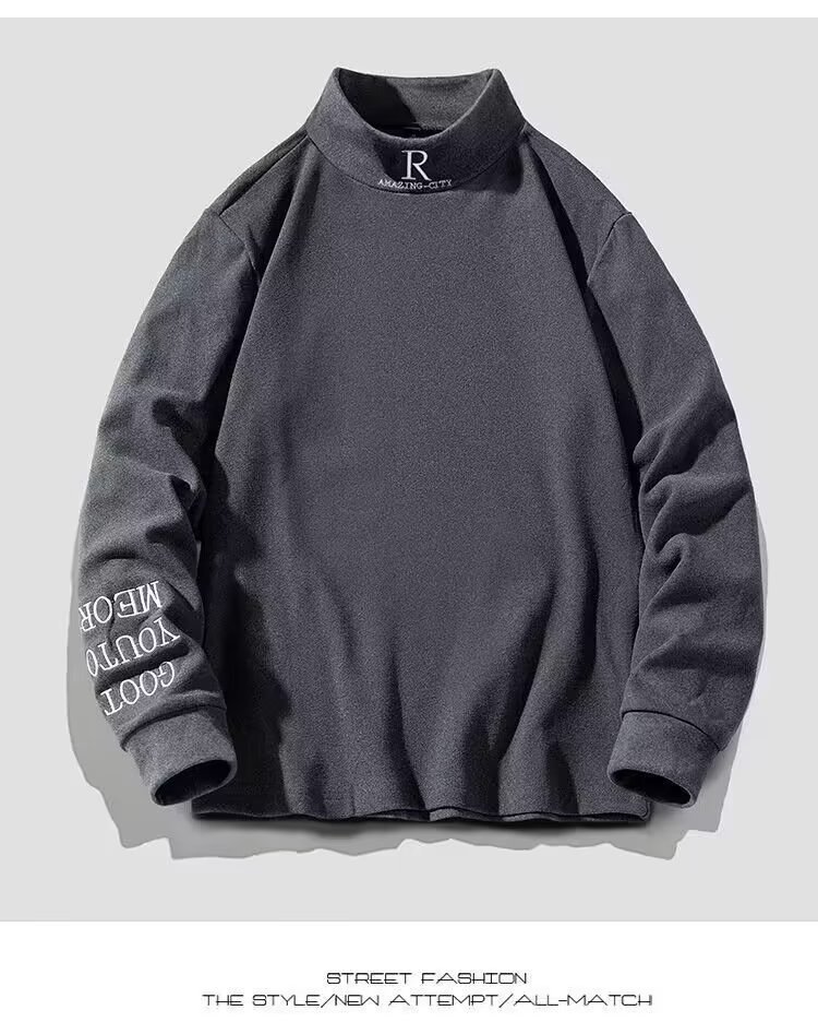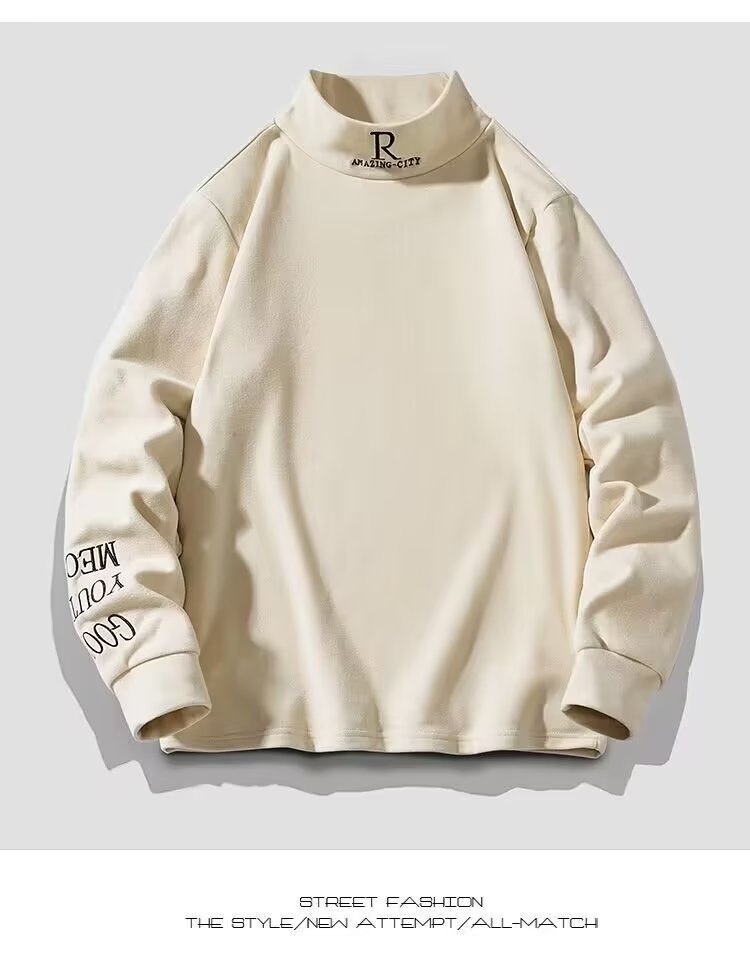 양면 벨벳 하프 터틀넥 바닥 셔츠 남성 고급 가을과 겨울 미국 복고풍 따뜻한 미드 칼라 내부 긴팔 티셔츠