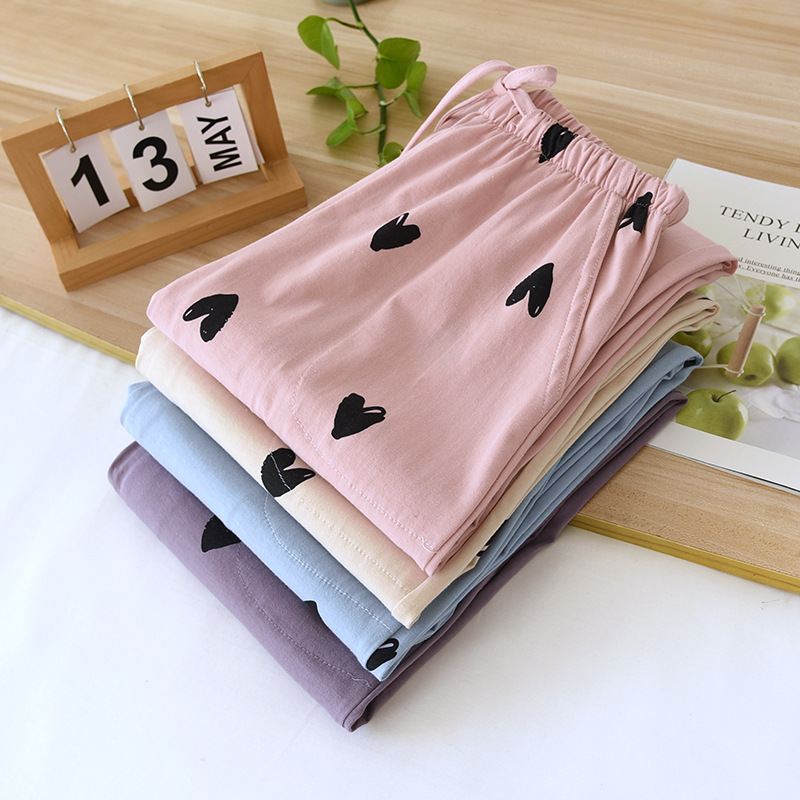 새로운 여성용 코튼 파자마 바지 폴카 도트 부드러운 얇은 봄/여름 가을 홈 팬츠 캐주얼 느슨한 바지를 외부에서 착용 할 수 있습니다.
