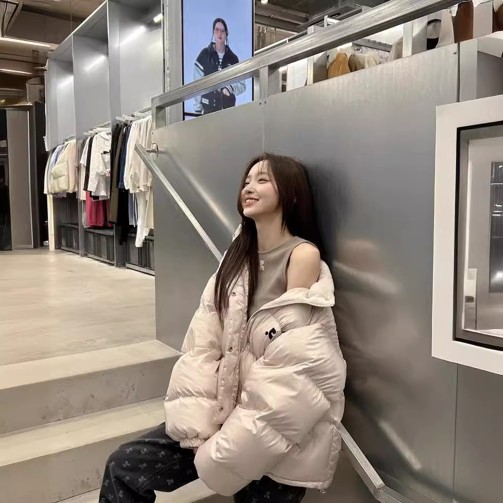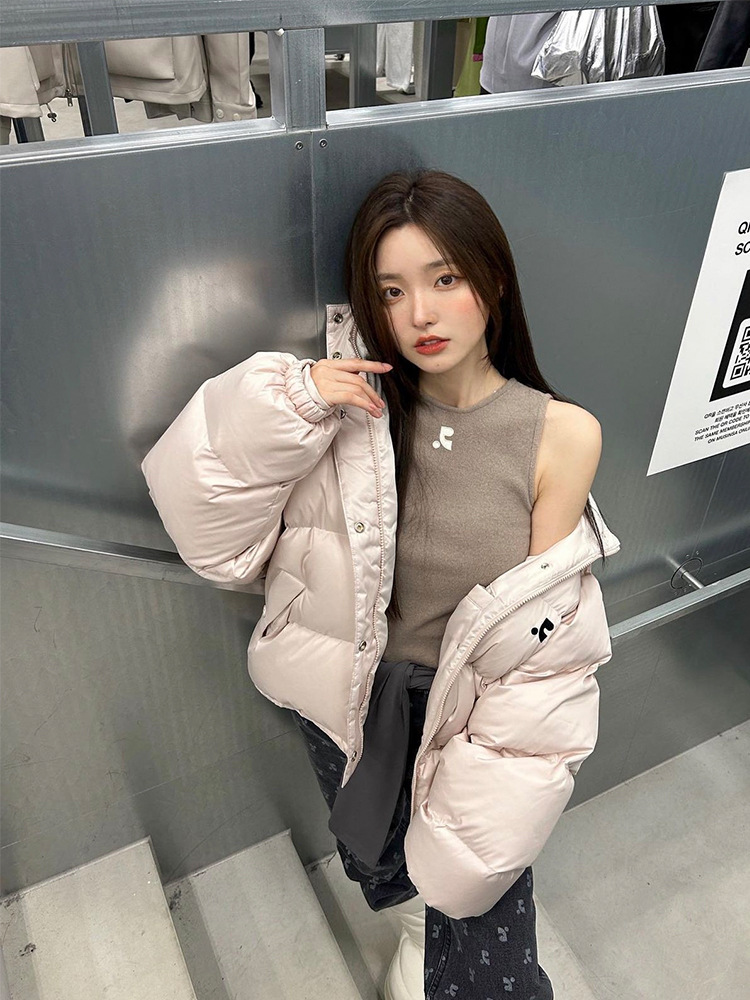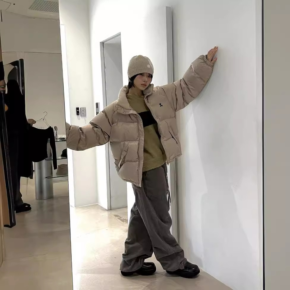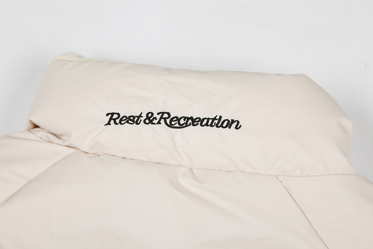 한국의 틈새 트렌드 브랜드 Rest RR clottyteam90 화이트 덕다운 자수 스탠드 칼라 다운 재킷 여성용 겨울
