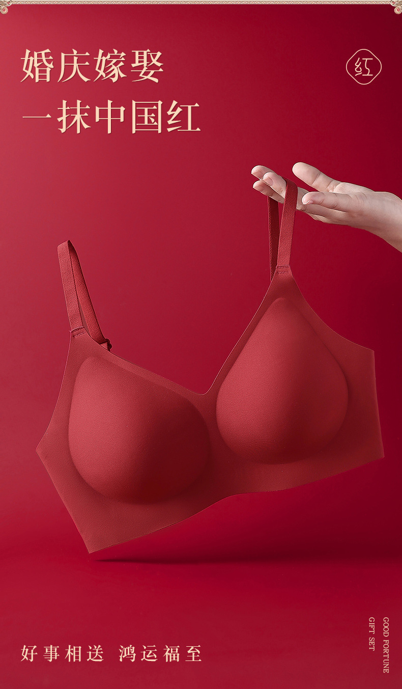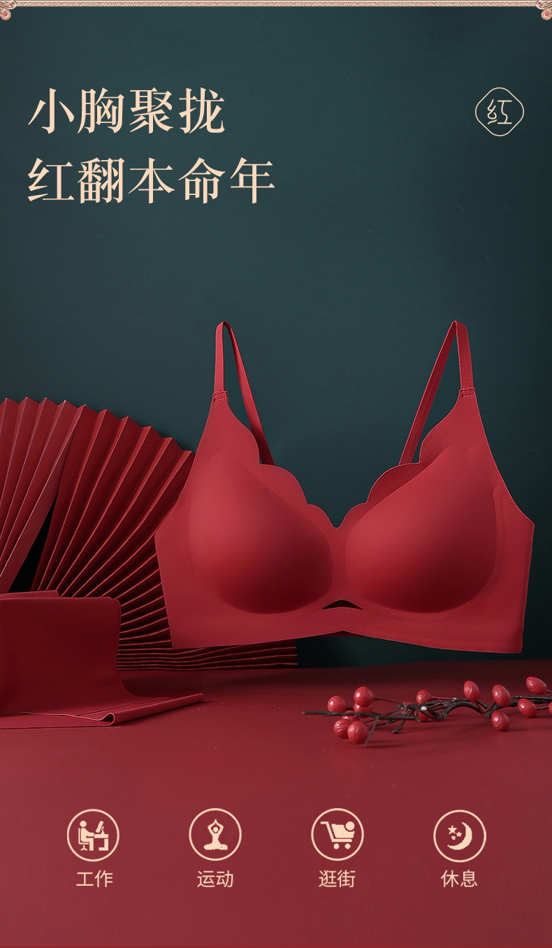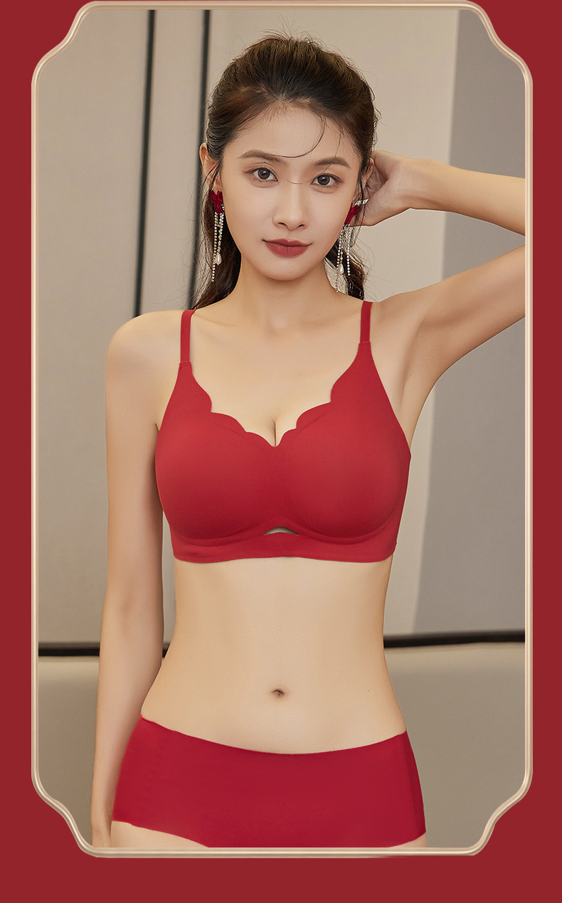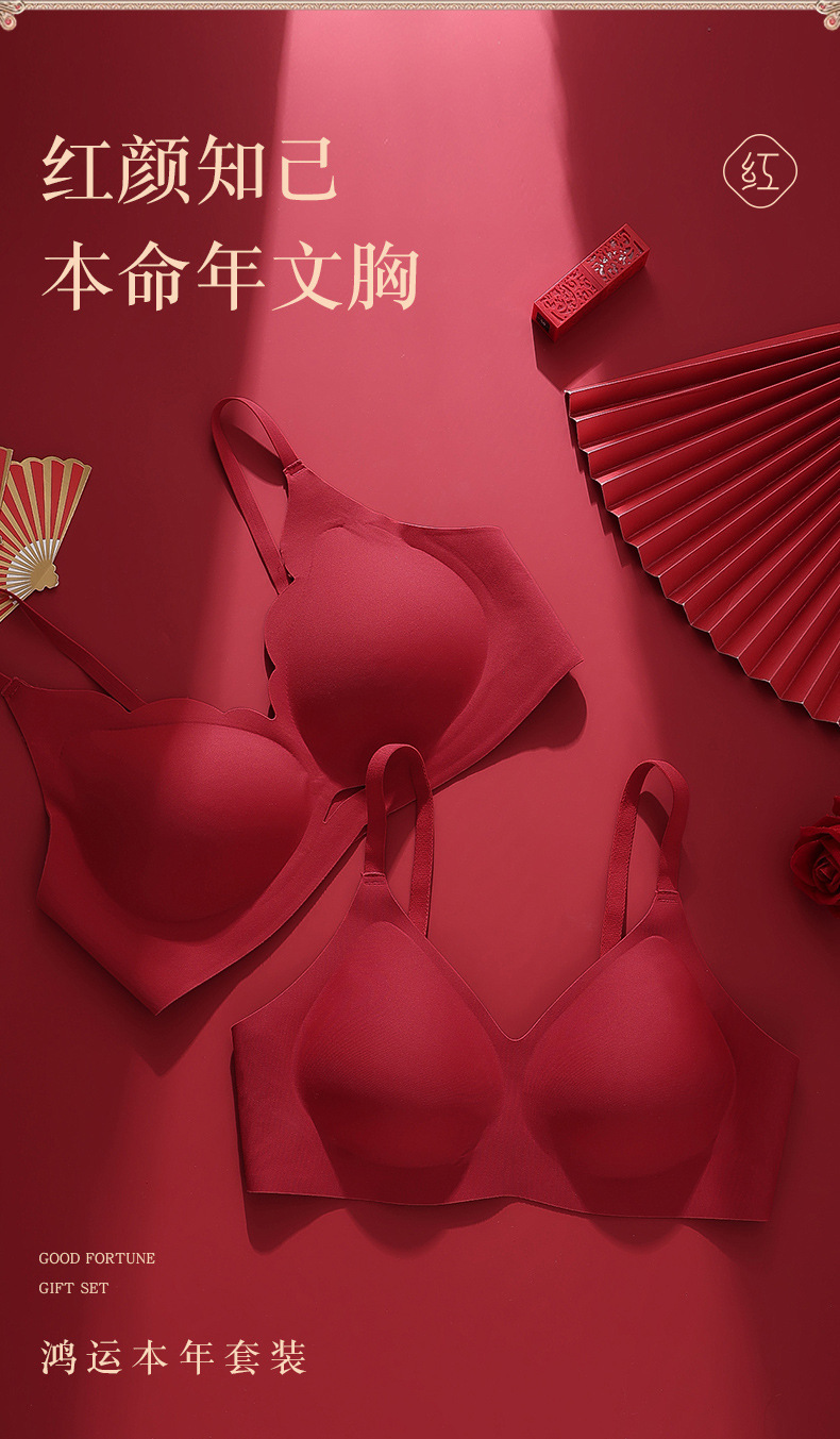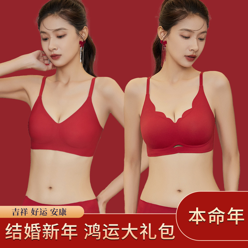 붉은 속옷 여성의 세트 결혼식 신부 속옷 드래곤 년 작은 가슴은 처짐 방지 원활한 브래지어를 밀어