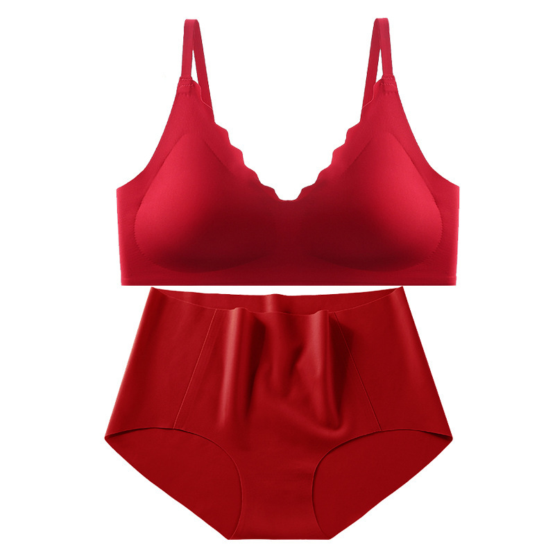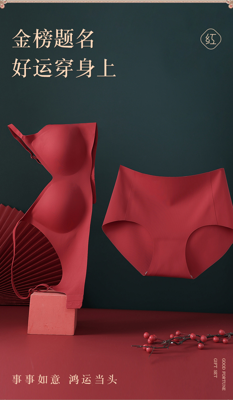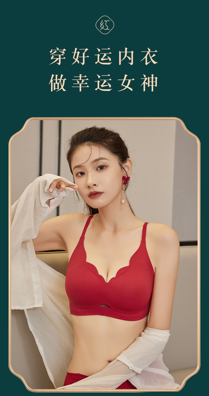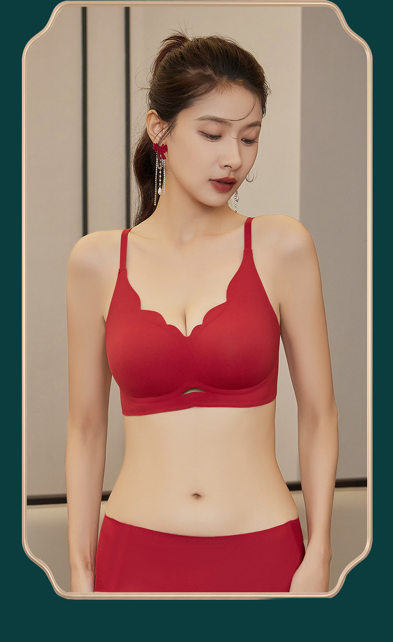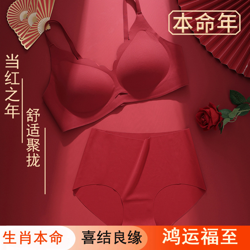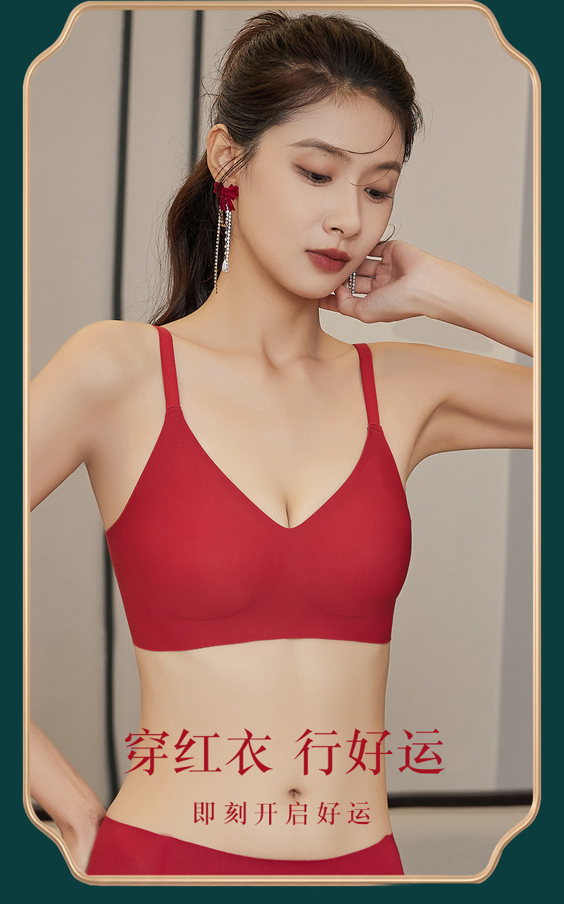 붉은 속옷 여성의 세트 결혼식 신부 속옷 드래곤 년 작은 가슴은 처짐 방지 원활한 브래지어를 밀어