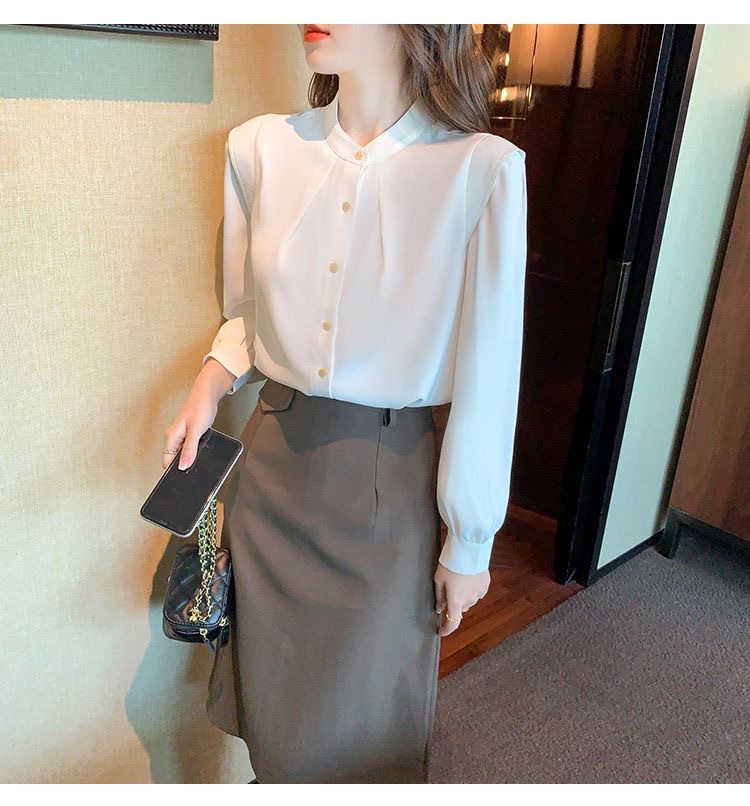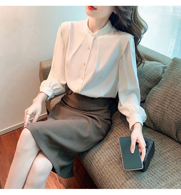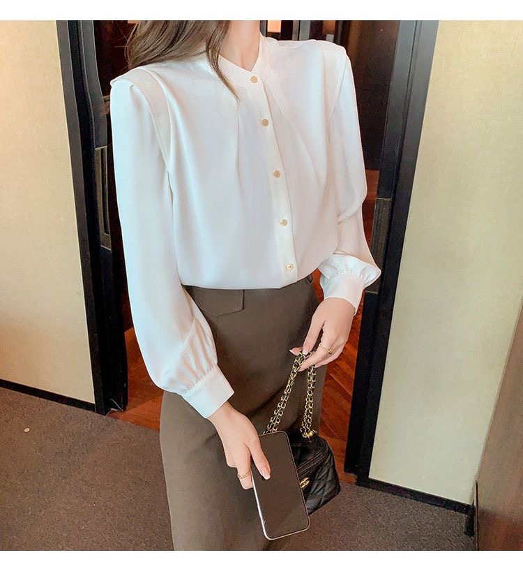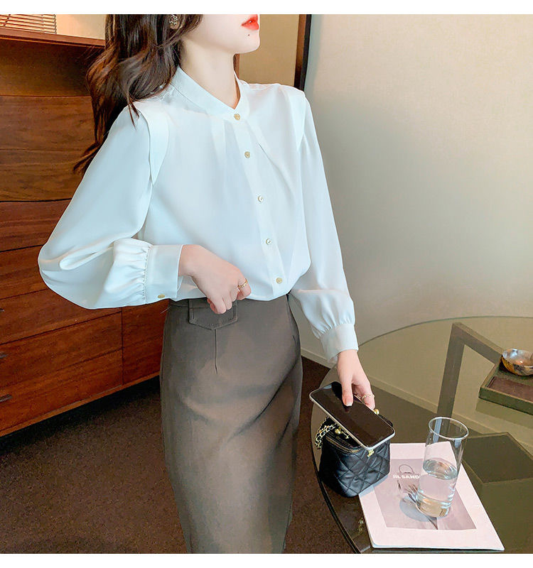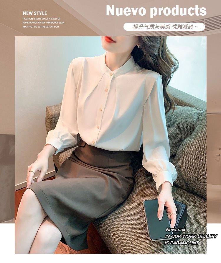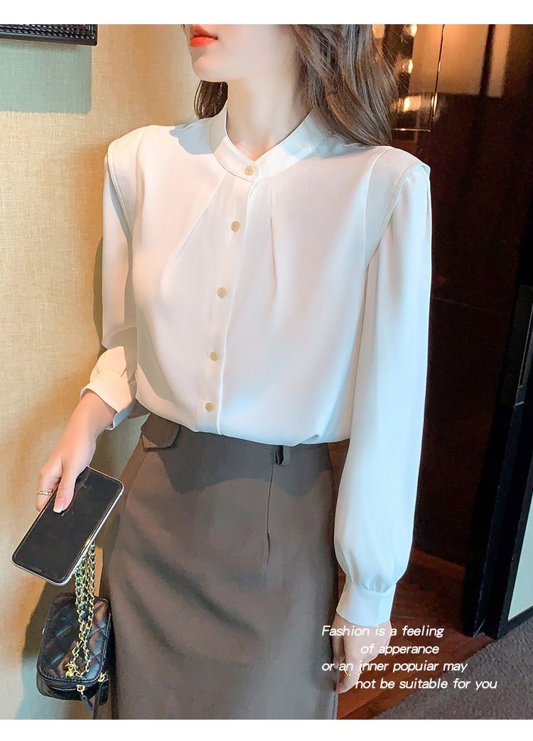 2024 봄과 가을 새로운 라운드 넥 셔츠 느슨한 슬리밍 다목적 탑 화이트 비즈니스 여성용 바지 셔츠