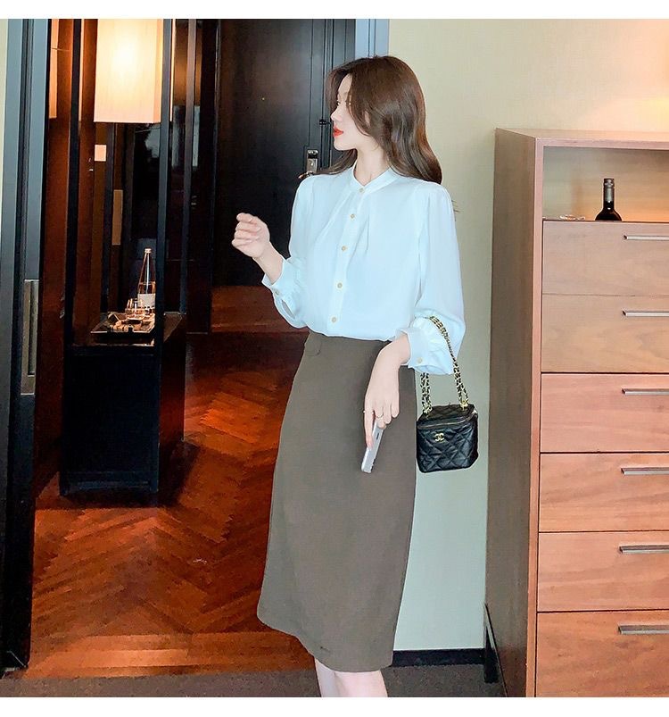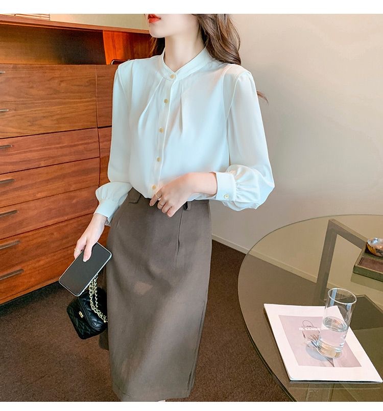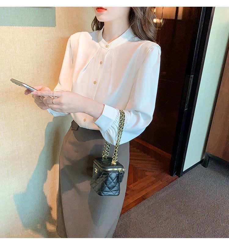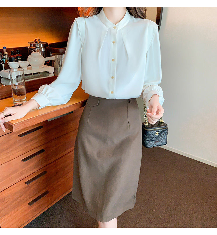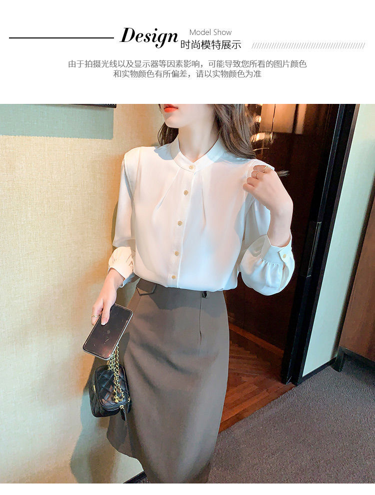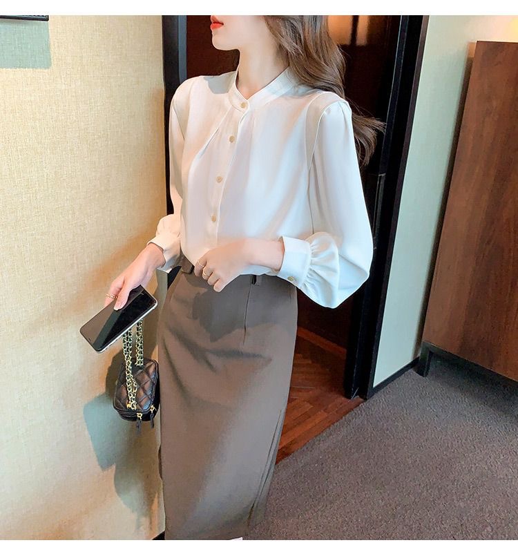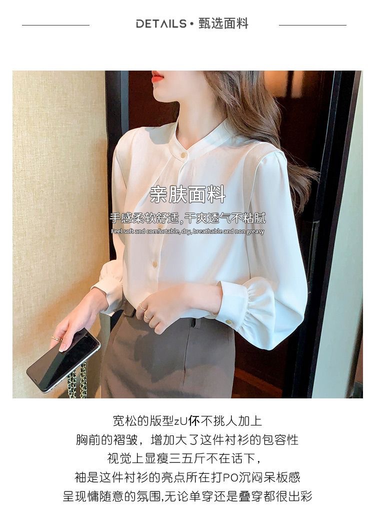 2024 봄과 가을 새로운 라운드 넥 셔츠 느슨한 슬리밍 다목적 탑 화이트 비즈니스 여성용 바지 셔츠