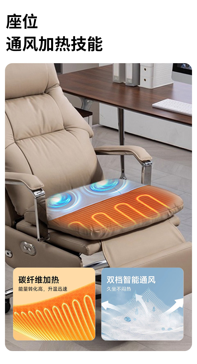 ★ 【메탈 팔걸이 전동형】 라이트 브라운 초극세사 가죽 + 마사지 + 통풍 난방