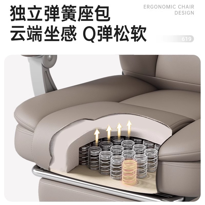 1층 송아지 가죽 [라이트 그레이 + 요추 지지대 조절 + 발판] + 스프링 백 시트 쿠션