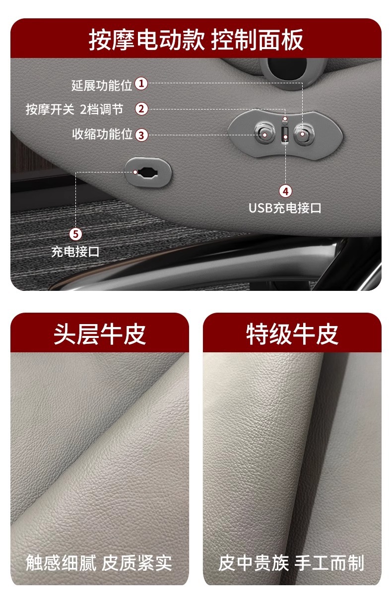 【최상급 소가죽】 연회색 + 발 받침대 + 허리 받침대 조절 + 헤드레스트 높이 조절