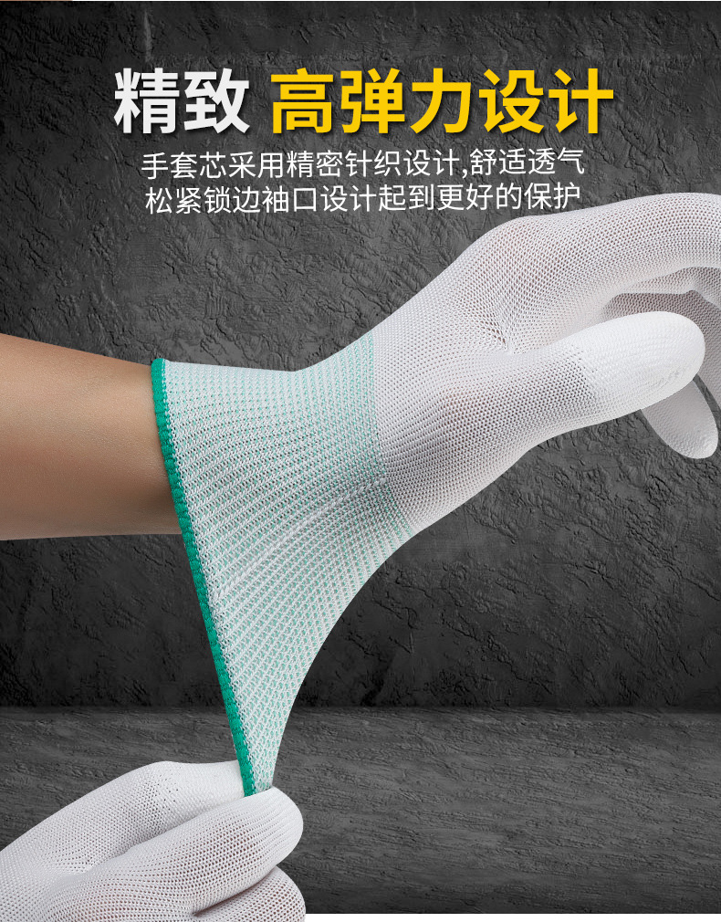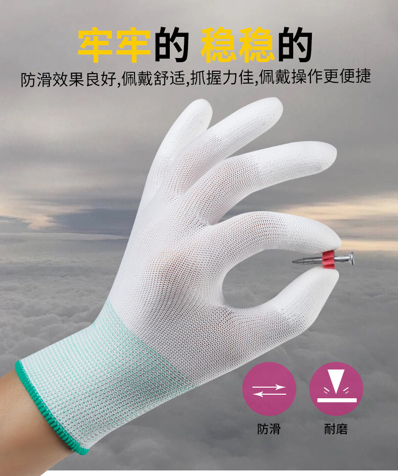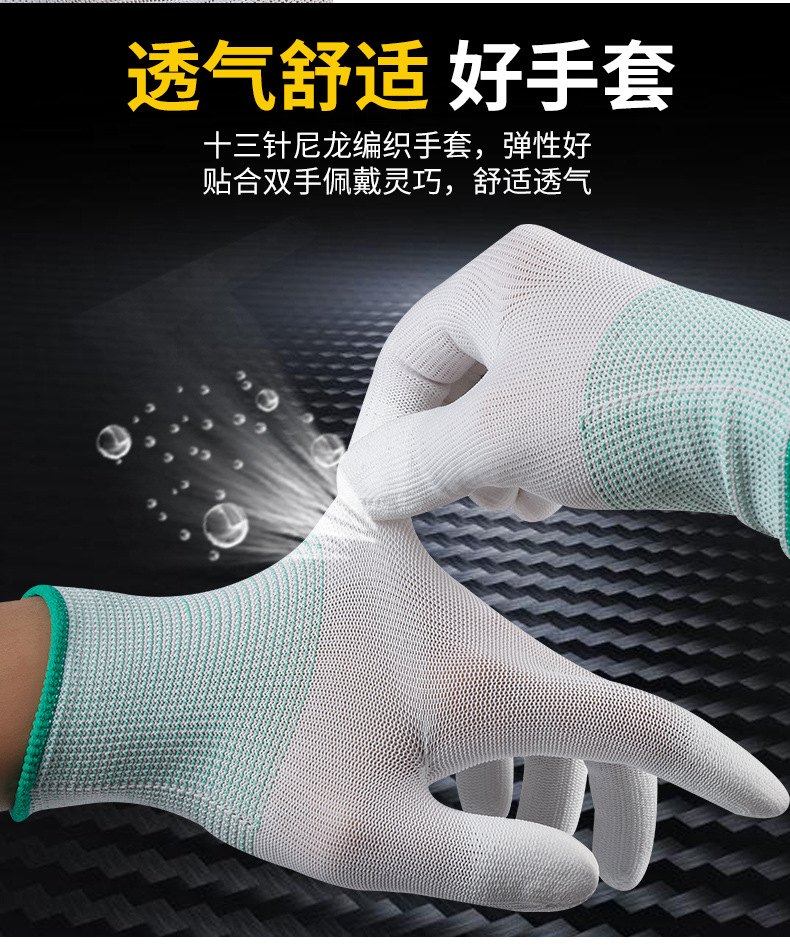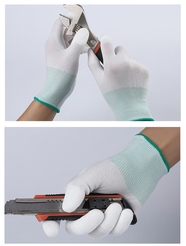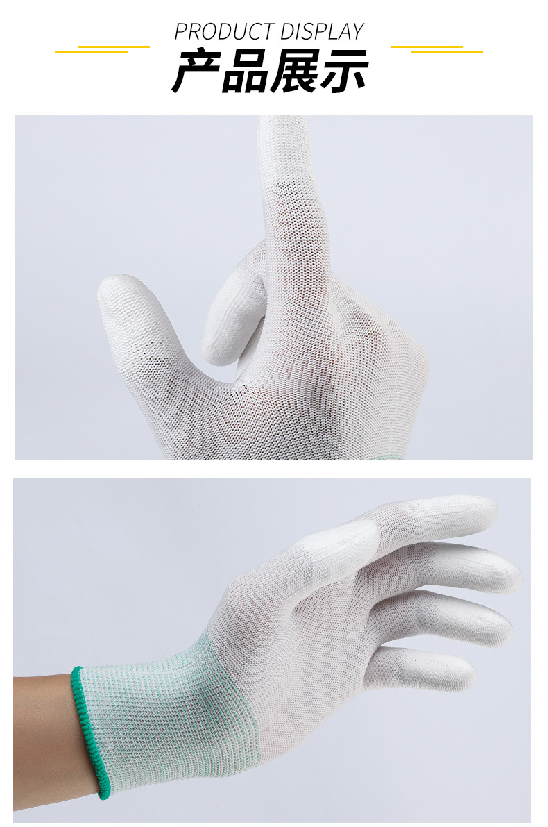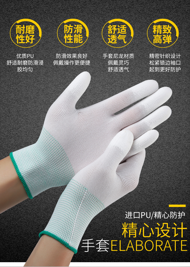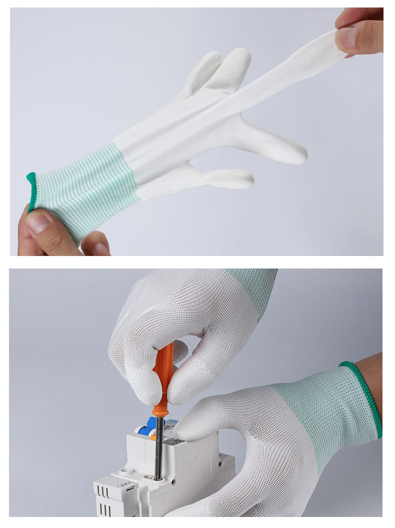 PU 코팅 손바닥 장갑 흰 먼지가없는 전자 공장 정전기 방지 코팅 PU 코팅 손가락 노동 보호 장갑 얇은 도매