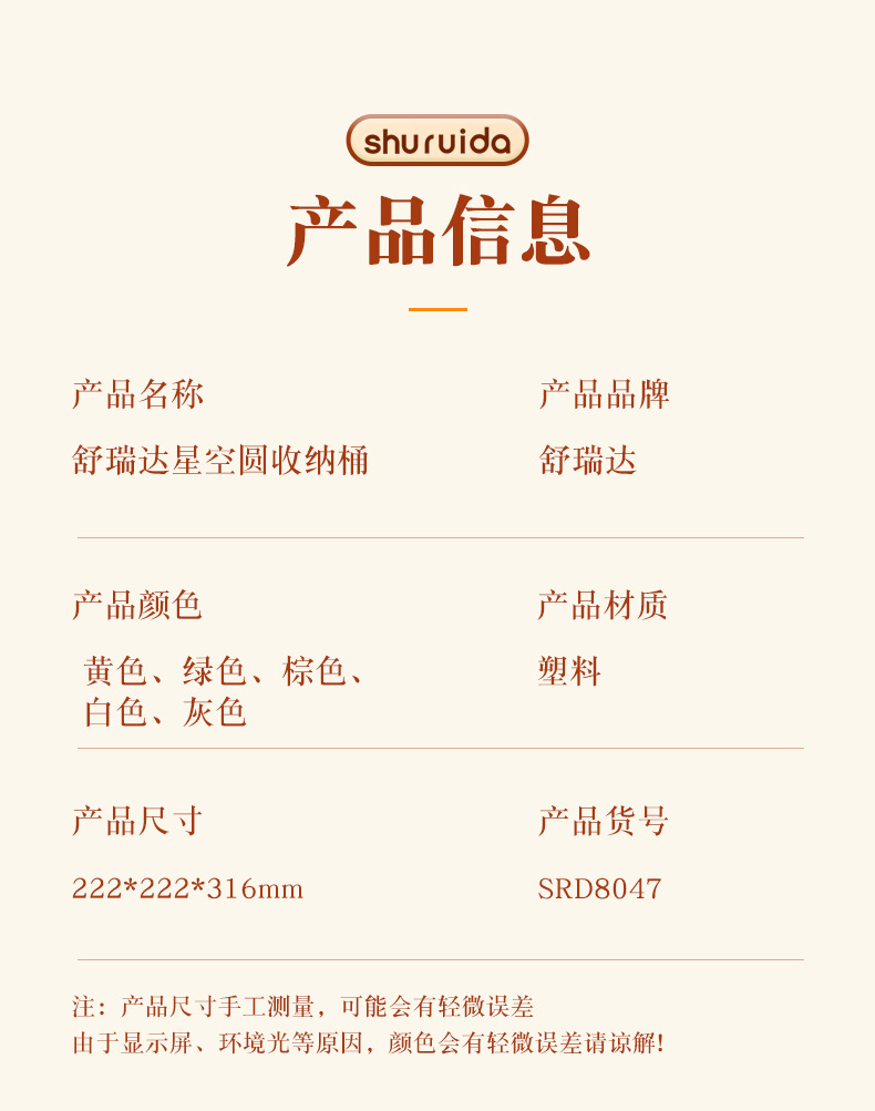 Shurida Starry Sky 라운드 스토리지 버킷 가정용 플라스틱 세탁 바구니 작은 물건 보관 바구니 욕실 주방 쓰레기통