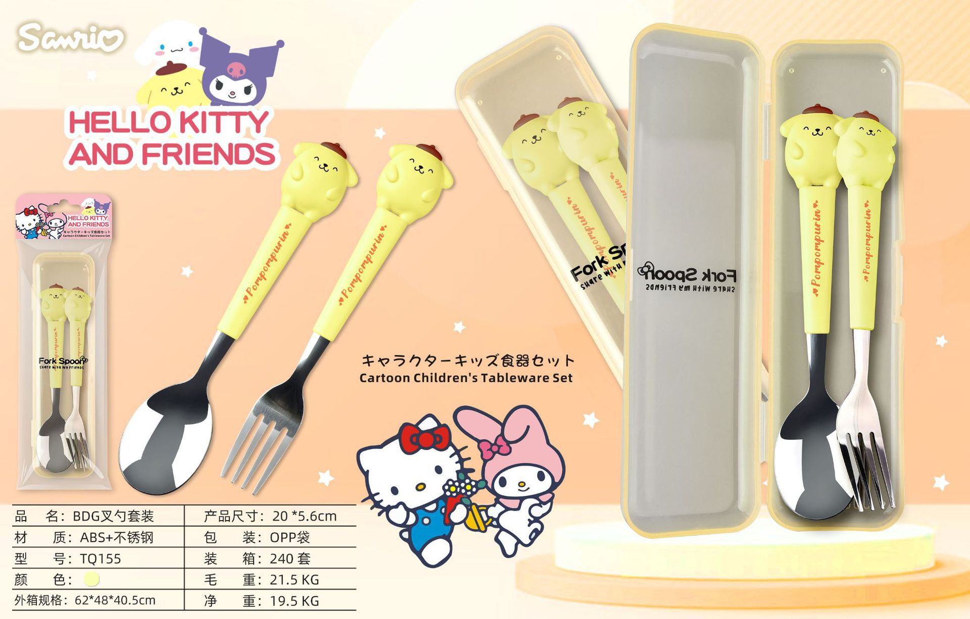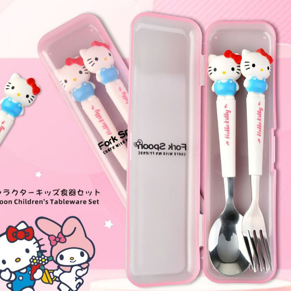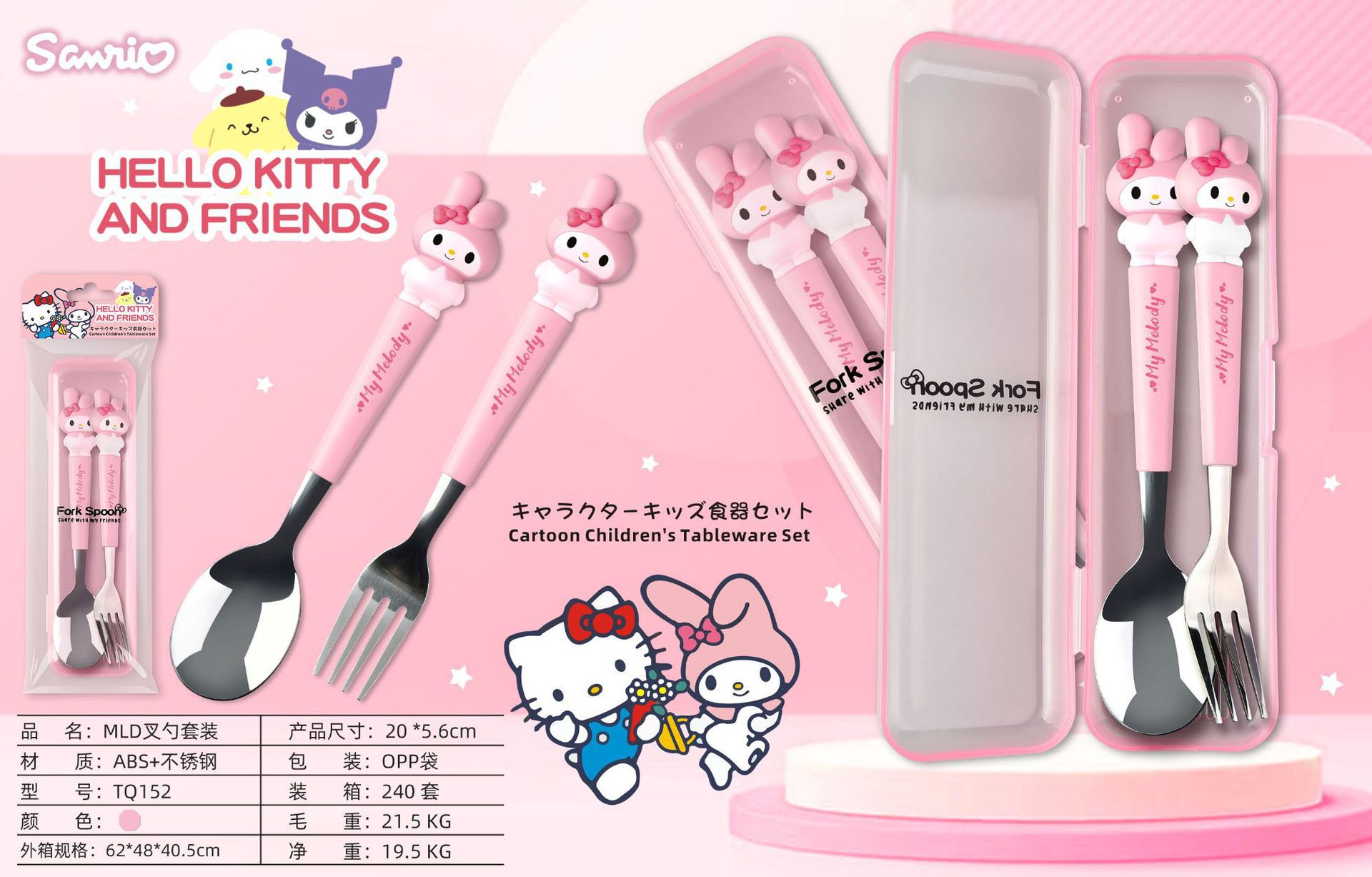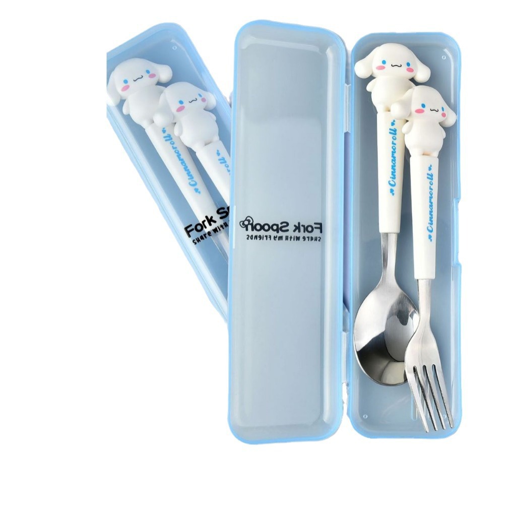 산리오 빅이어독 멜로디 304 스테인리스 어린이용 귀여운 만화 휴대용 식기 세트 젓가락 숟가락 세트