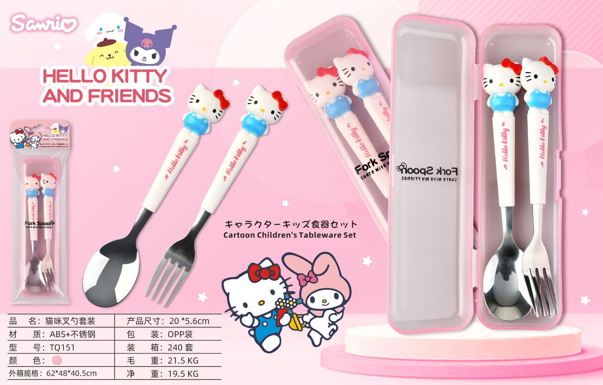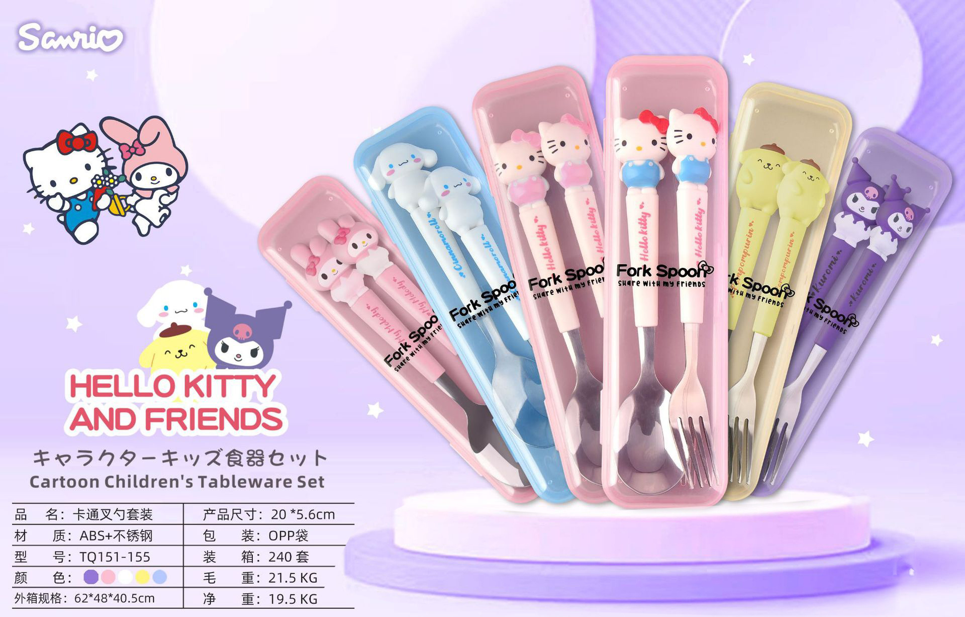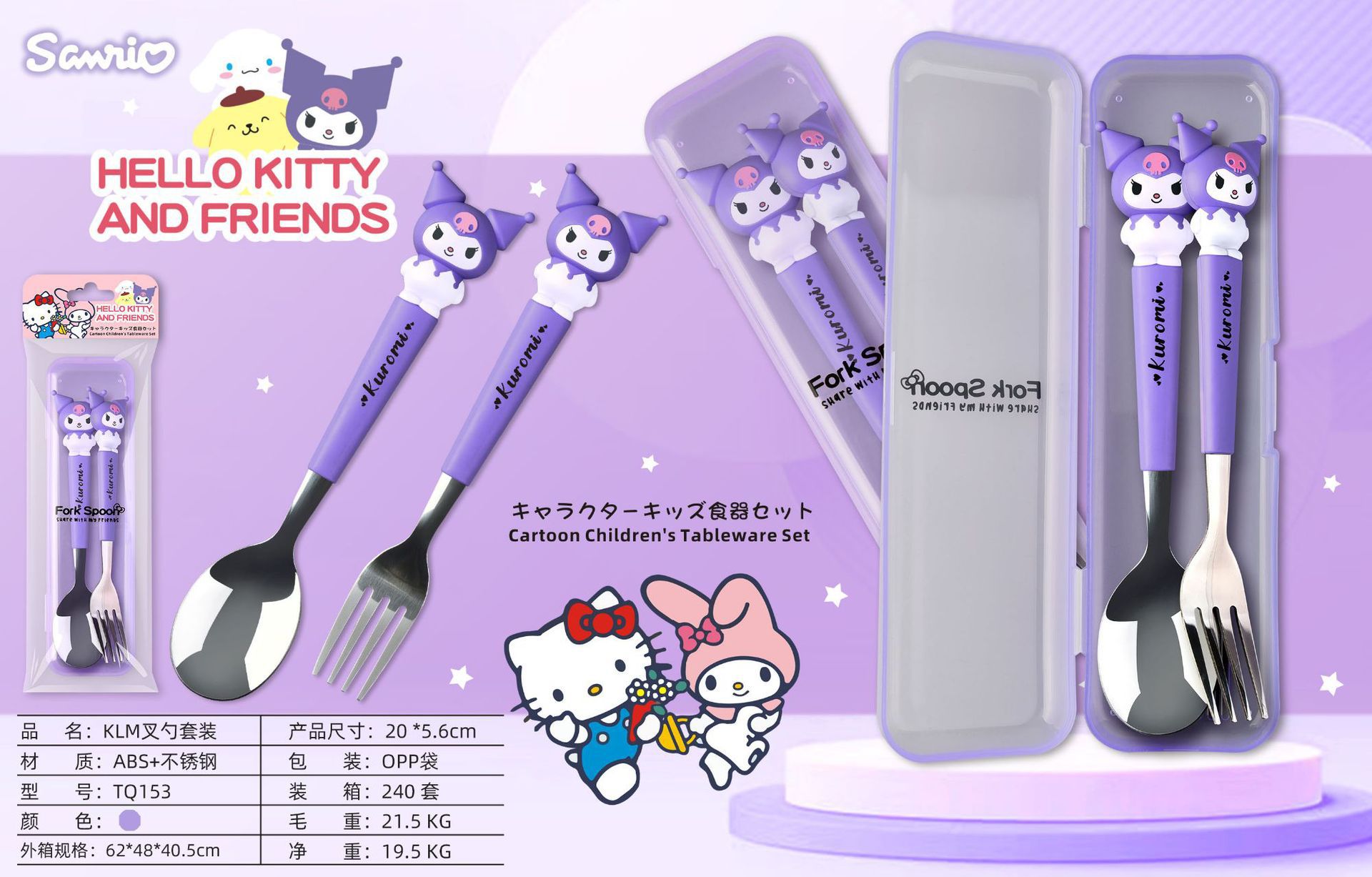 산리오 빅이어독 멜로디 304 스테인리스 어린이용 귀여운 만화 휴대용 식기 세트 젓가락 숟가락 세트