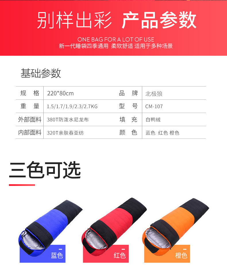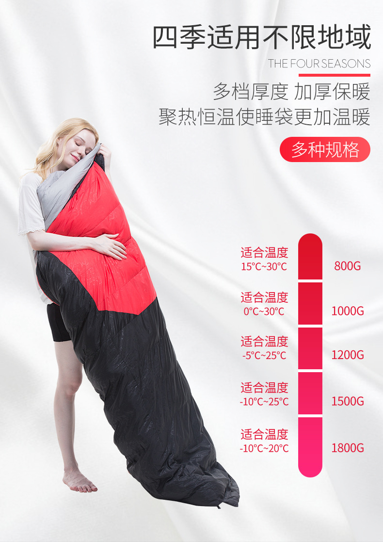 아래로 모피 침낭 2600g (아래로 1800g 포함) 빨간색