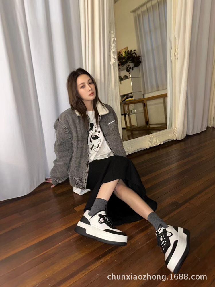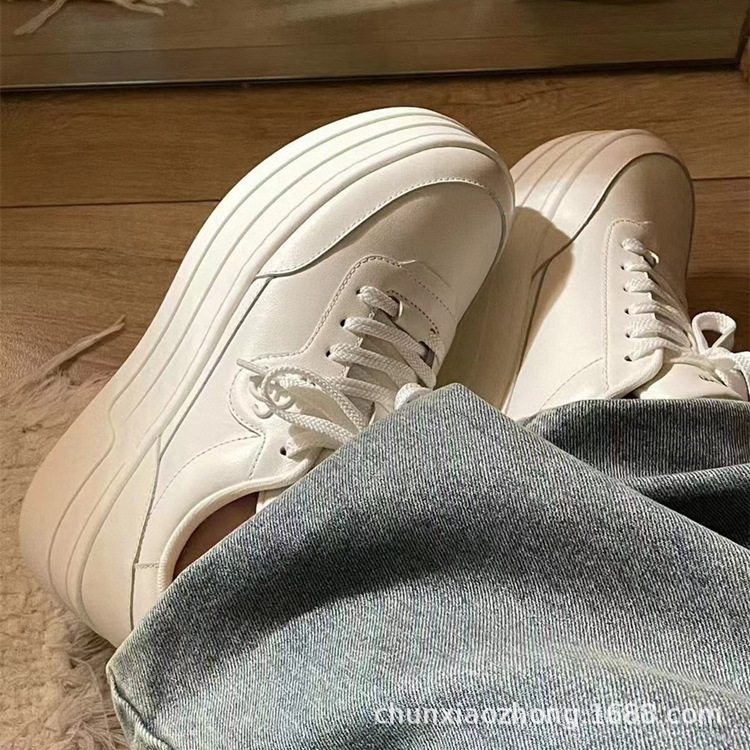 하이 버전 틈새 2025 봄 Zhao Lusi 모델 ANN 플랫폼 두꺼운 밑창 흰색 신발 여성 증가 레이스 업 캐주얼 스포츠 신발