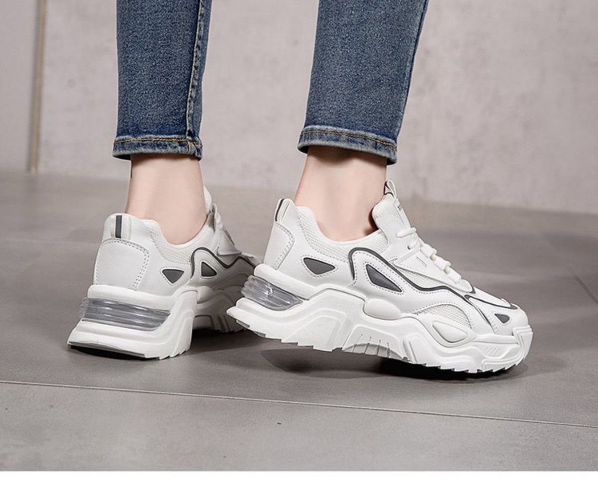 새로운 여성 캐주얼 신발 트렌디 한 2024 가을 비행 짠 메쉬 여성 신발 한국식 학생 두꺼운 바닥 야외 여성 운동화
