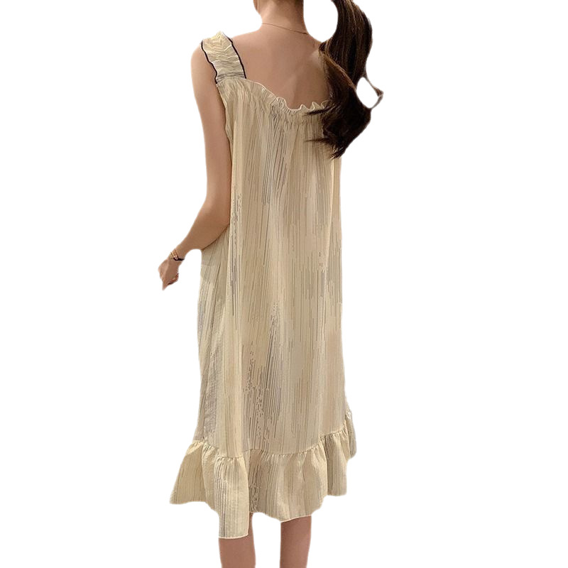 페어리 스타일 얇은 폴리에스터 면 민소매 잠옷, 여름철 통기성 좋고 외출복으로도 착용 가능한 소녀들을 위한 홈웨어, 민소매 중간 길이