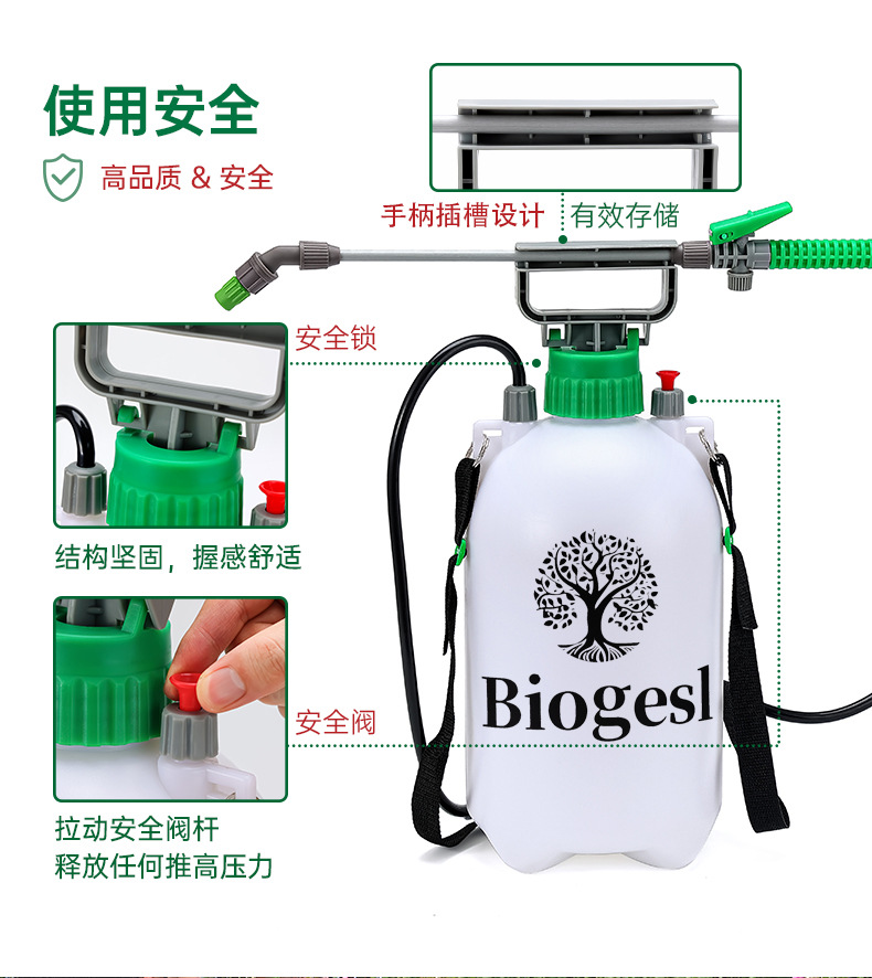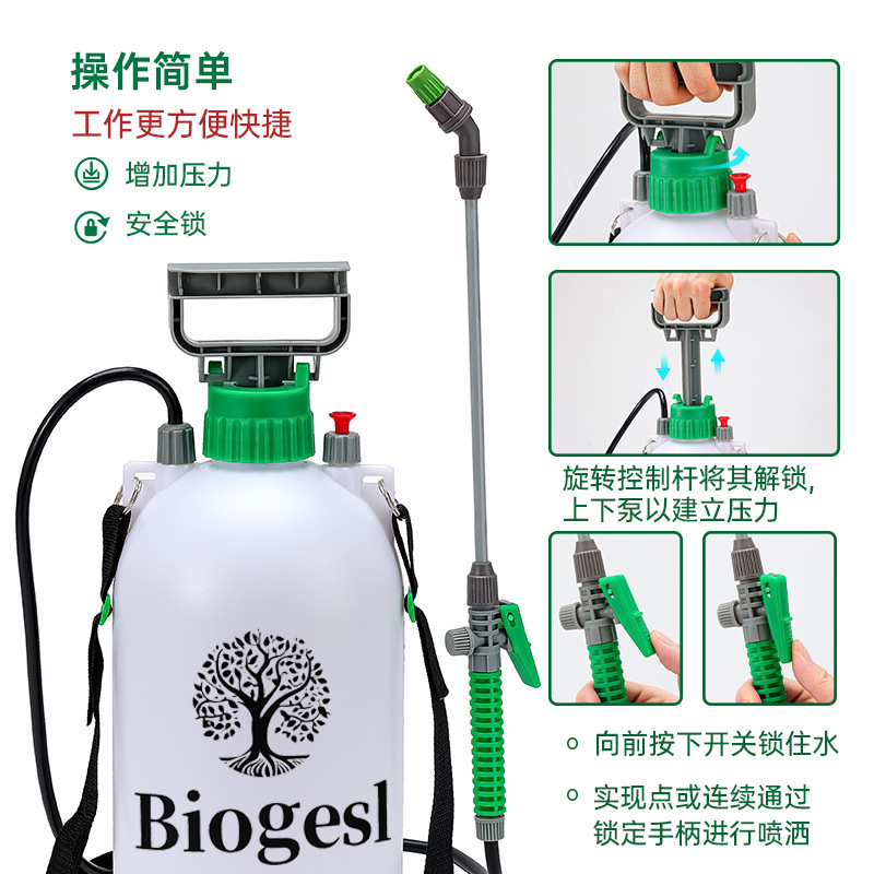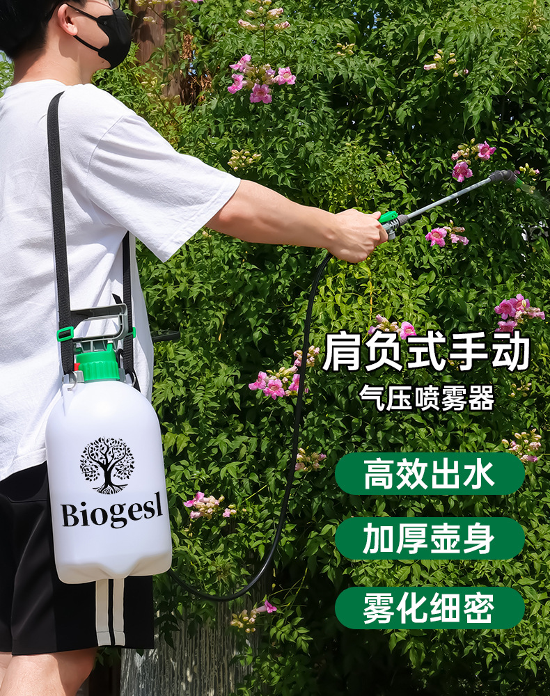 Biogesl 5L 가정용 청소 및 원예 스프링클러 세차 어깨 분무기 수동 공기압 물뿌리개 꽃에 물주기