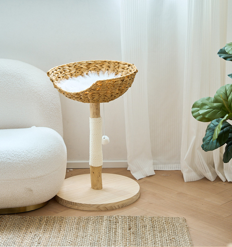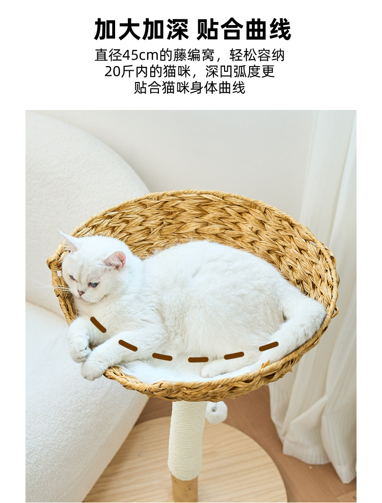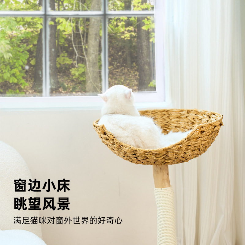 고양이 나무 고양이 등반 프레임 작은 작은 아파트 단단한 나무 등나무 스타일 높은 모양의 연삭 발톱 고양이 둥지 통합 비포장 고양이 장난감