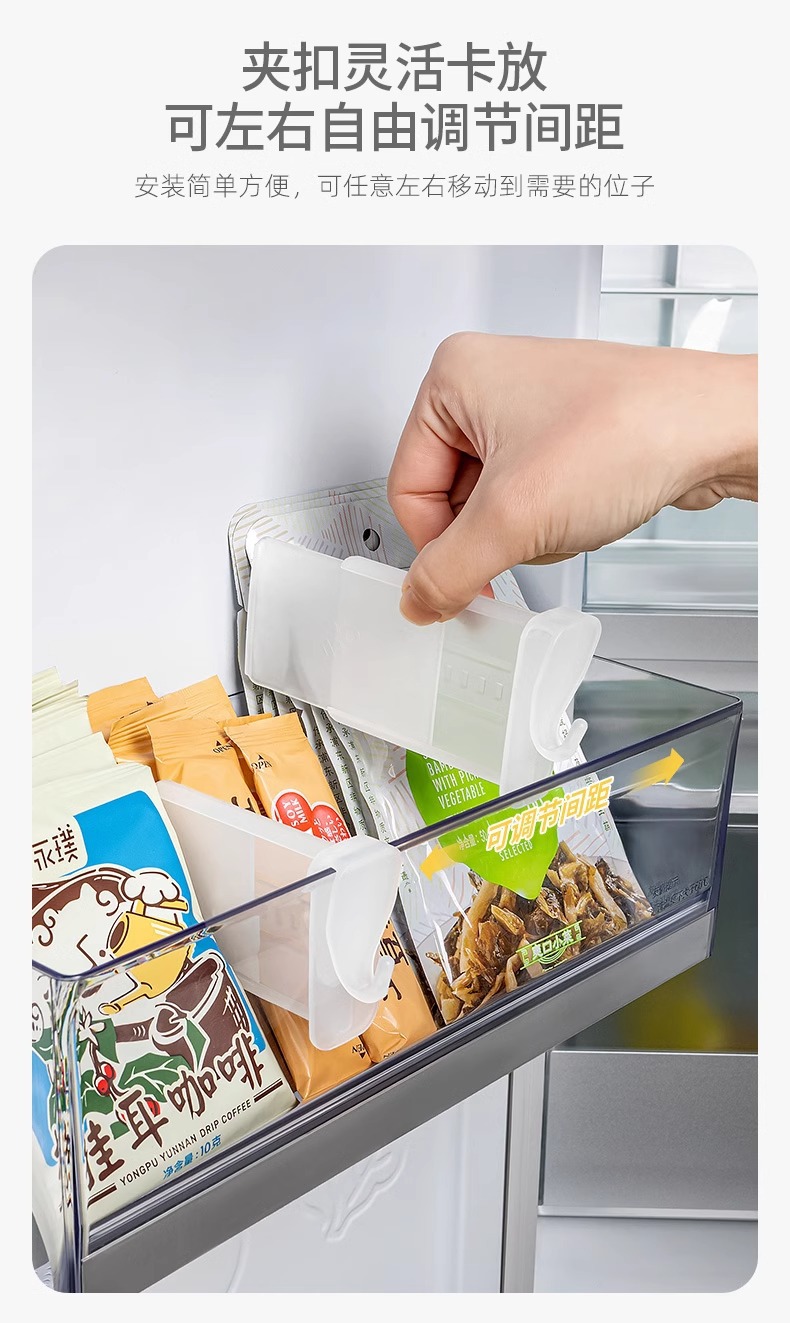 일본 냉장고 파티션 클립 내부 도어 파티션 파티션 그리드 아티팩트 조정 가능한 개폐식 저장 및 마무리