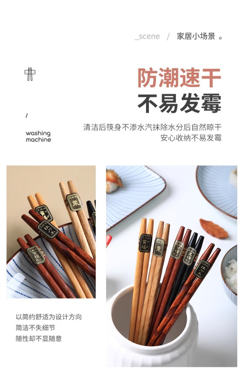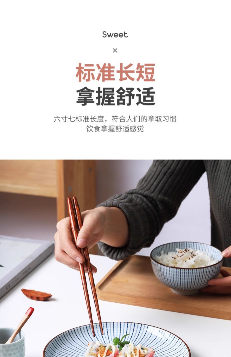 나무 젓가락 세트 1쌍 일본식 원목 뾰족한 가정용 식기 미끄럼 방지 북유럽 가정용 창의적인 식기