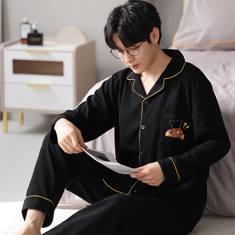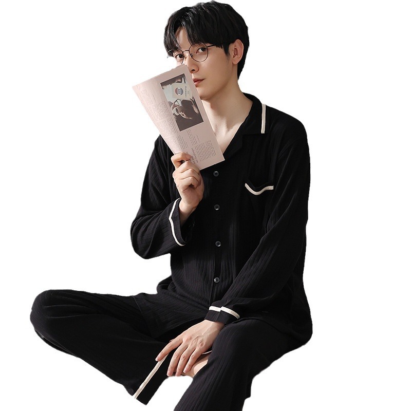 유자오린 남성용 잠옷 홈웨어 면 소재 라펠 세트 집에서 편안하게 입을 수 있는 캐주얼 스타일 통기성 긴팔