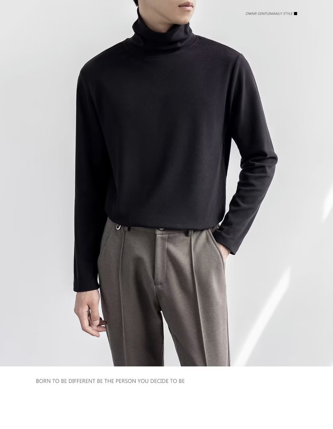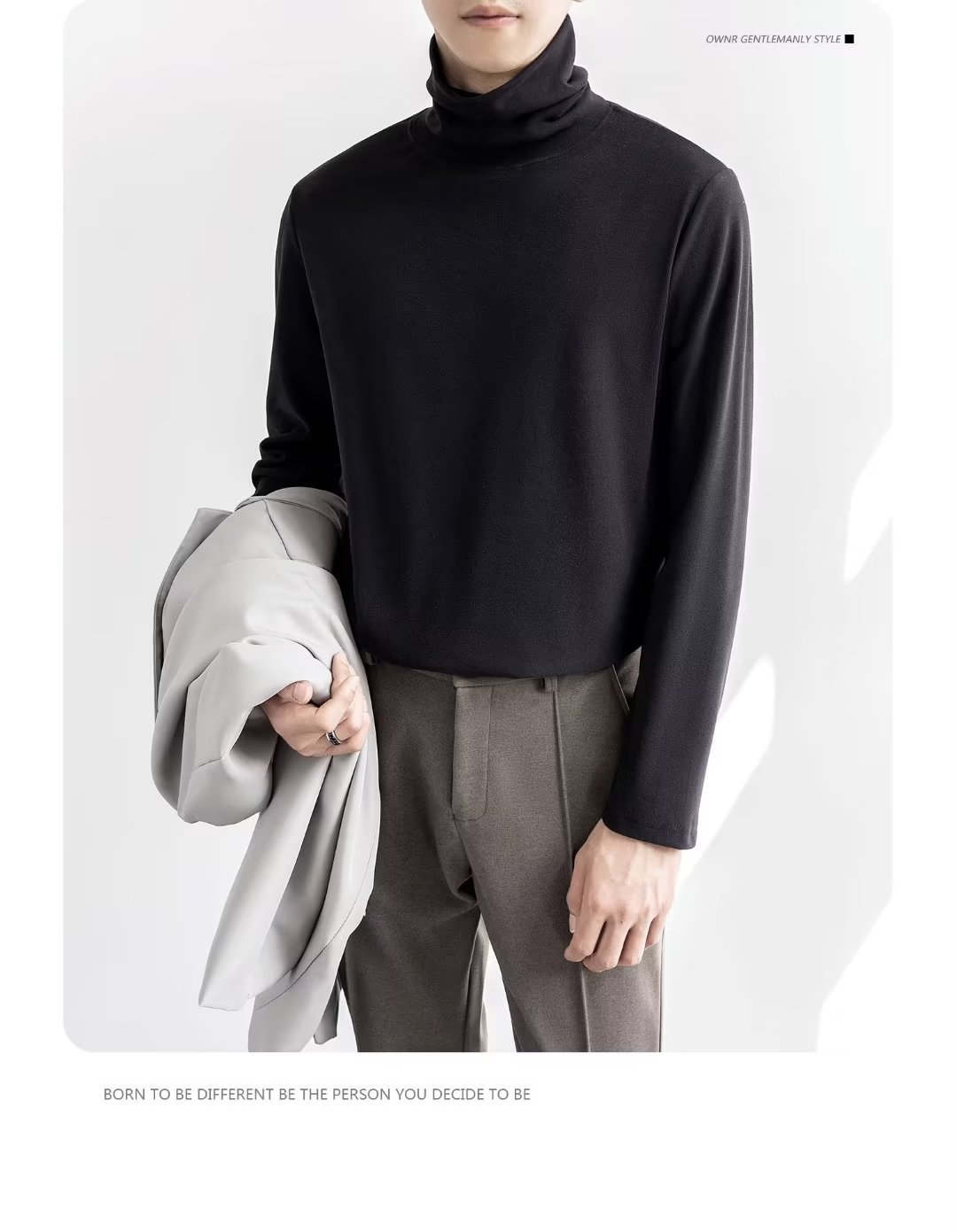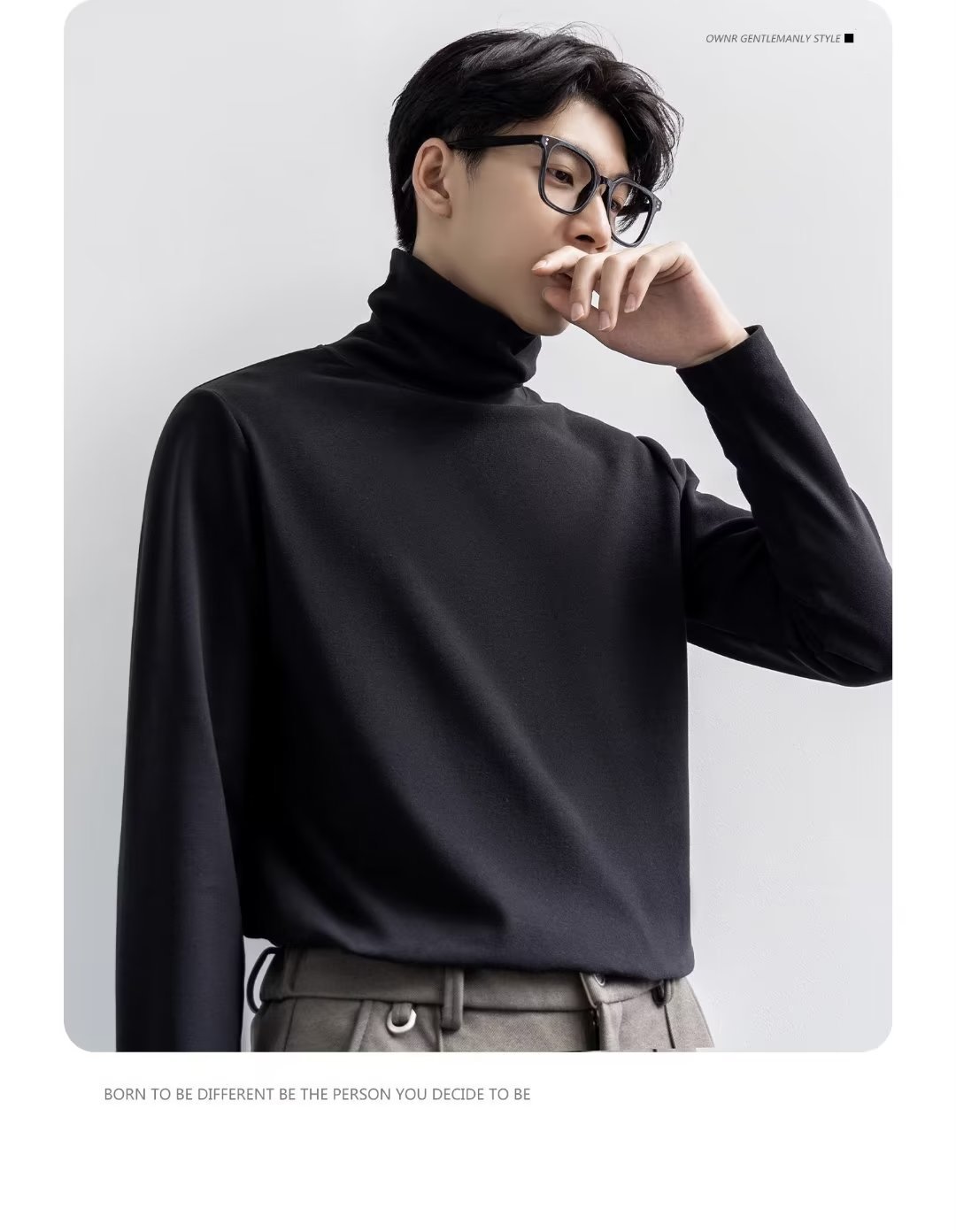 블랙 터틀넥 바닥 남성용 가을과 겨울 드 벨벳 티셔츠 긴 소매 트렌디 한 슬림 최고 고급 따뜻한 남성 내복