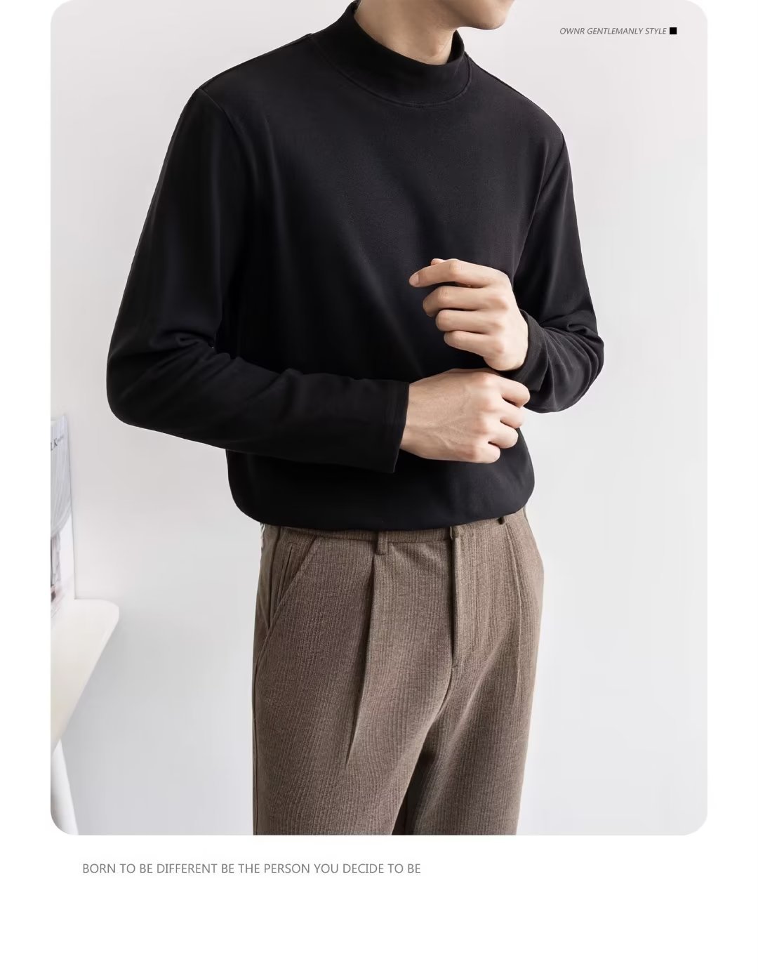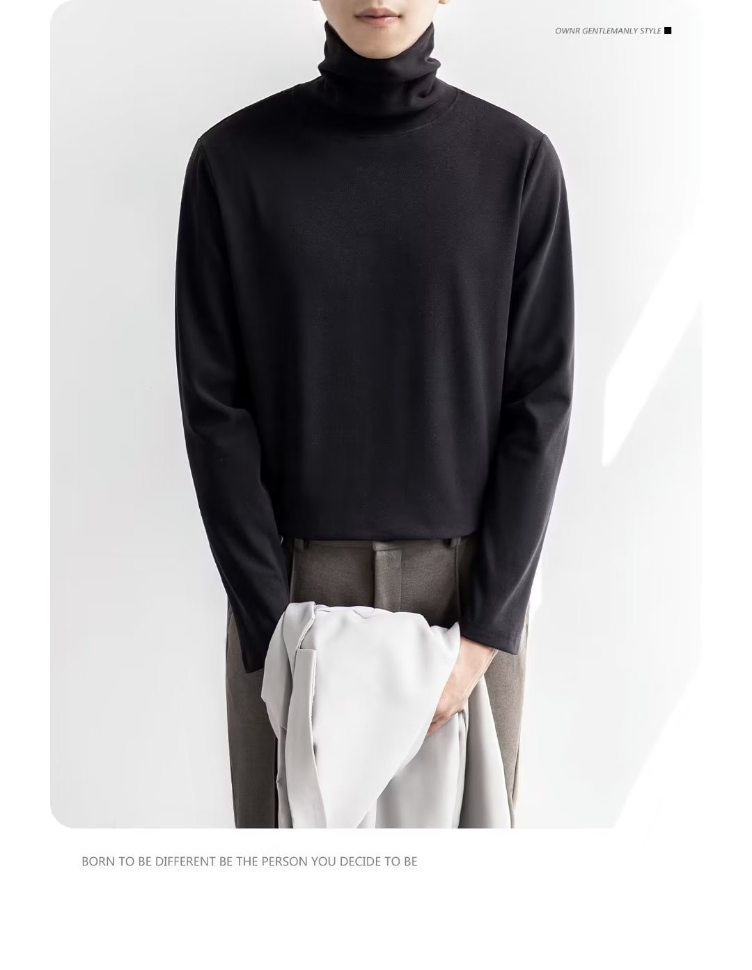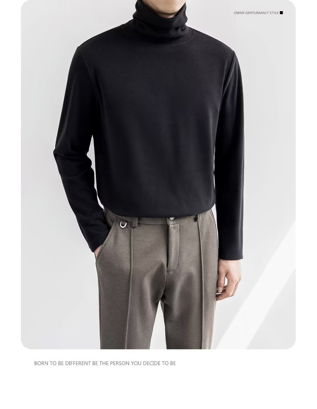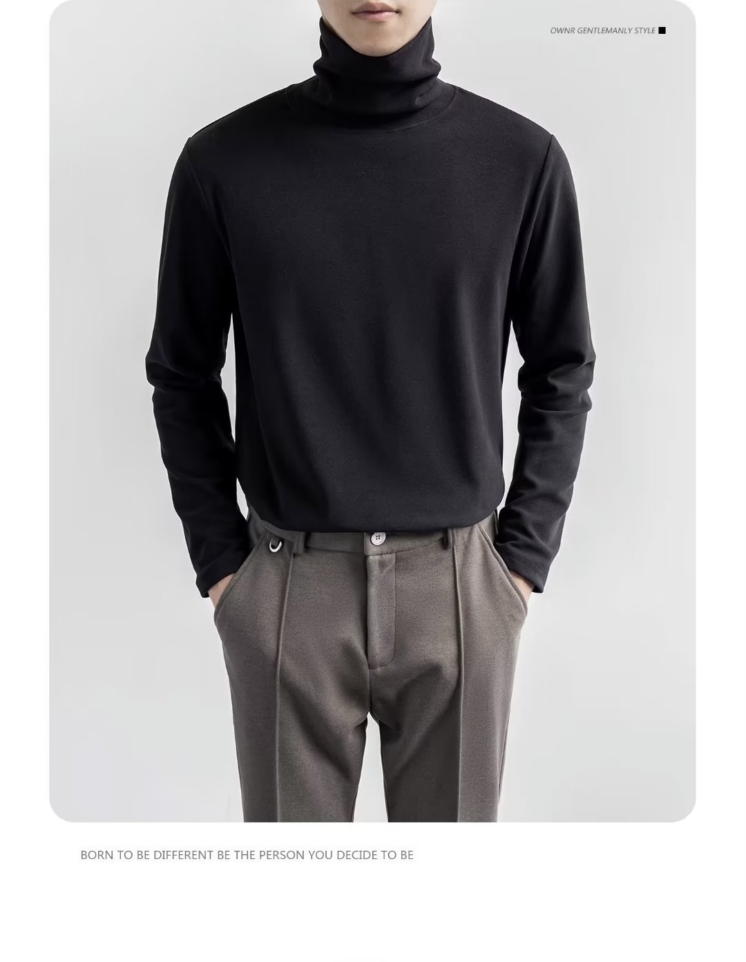 블랙 터틀넥 바닥 남성용 가을과 겨울 드 벨벳 티셔츠 긴 소매 트렌디 한 슬림 최고 고급 따뜻한 남성 내복