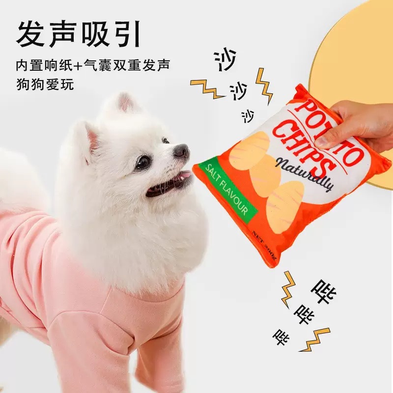 제조업체 도매 애완동물 소리나는 장난감, 시뮬레이션 감자칩 모양 고양이와 강아지용 봉제 장난감, 이갈이용, 물림방지, 지루함 해소용품