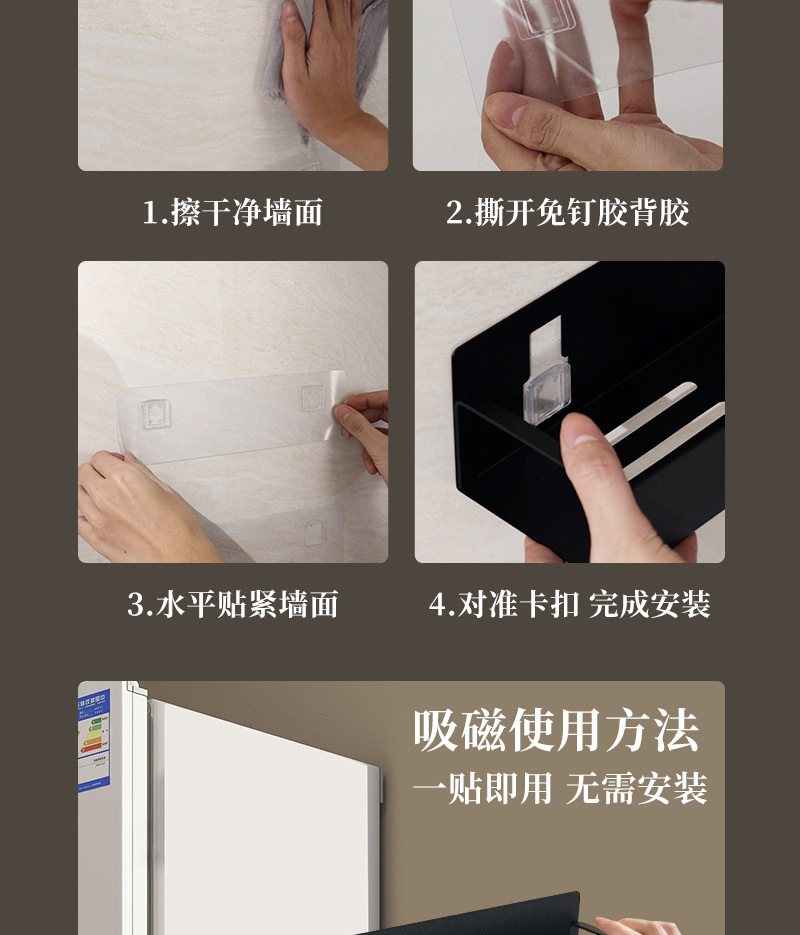 국경 간 벽 교수형 랙 가정용 주방 조미료 양념 랙 욕실 화장실 머리카락을위한 자기 흡수 저장 랙