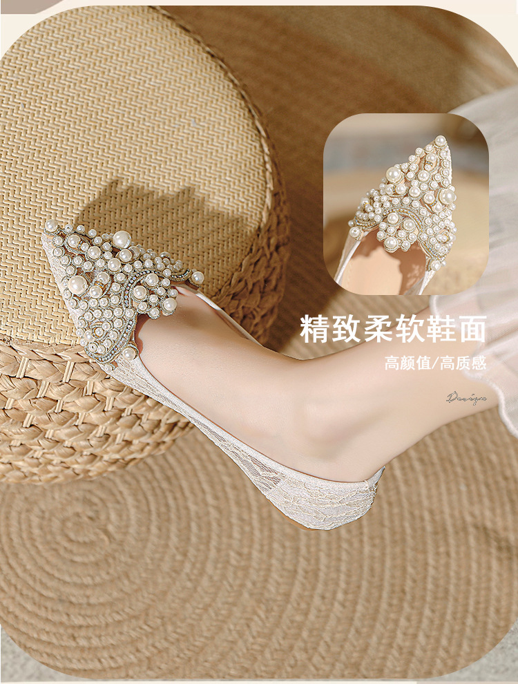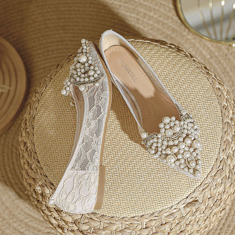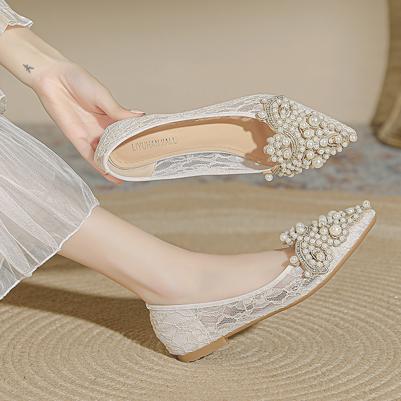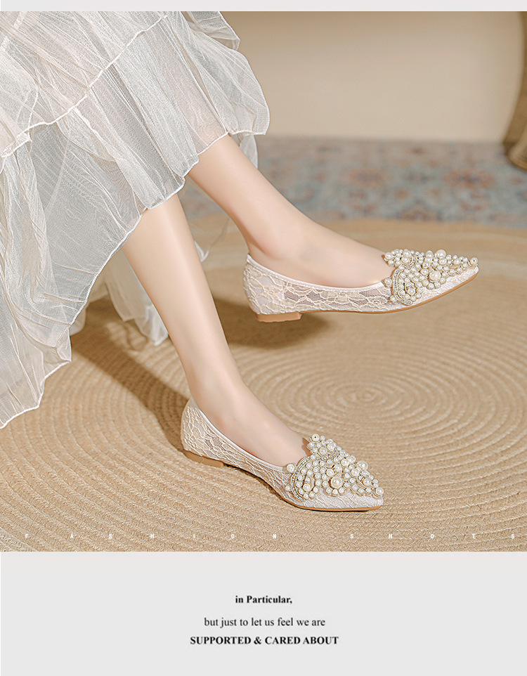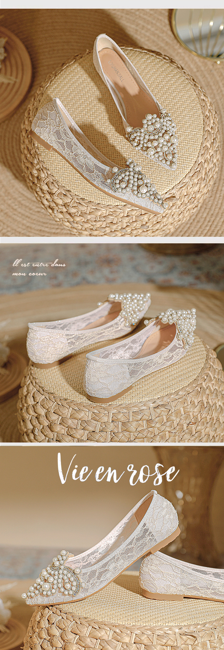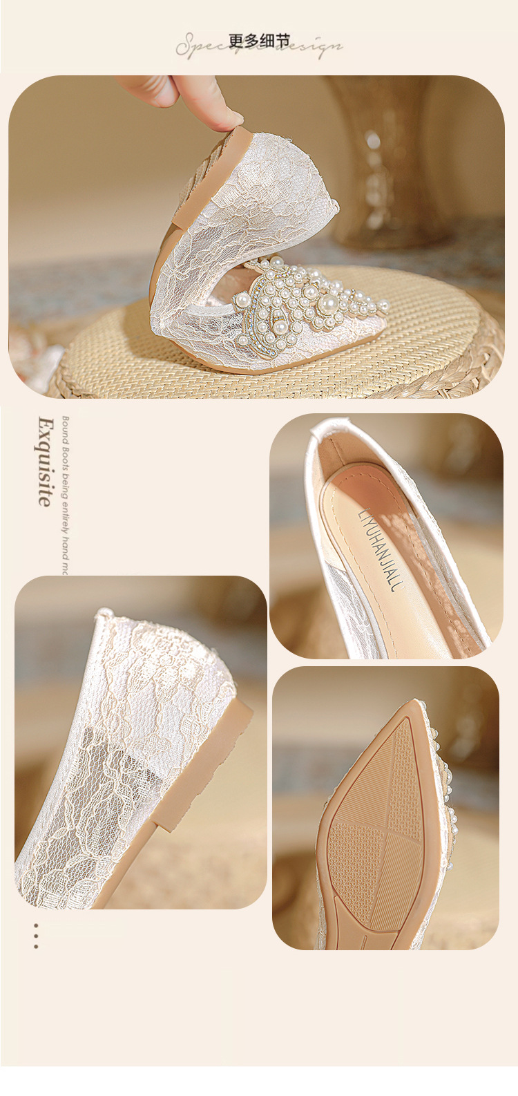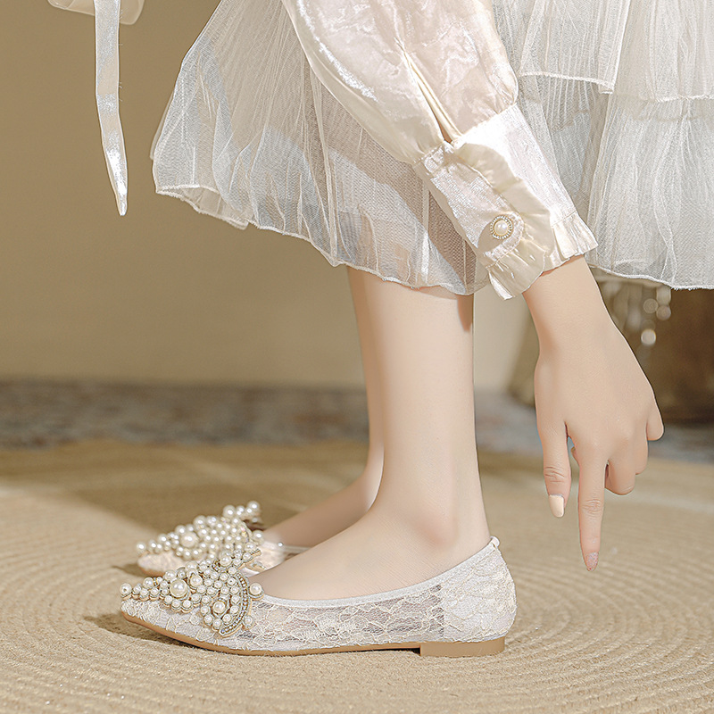플랫 웨딩 슈즈 신부 신발 여성용 2025 신상 소프트 솔 뾰족코 얕은 굽 요정 스타일 부드러운 워터 드라이 핑크 슈즈 신부 들러리 신발