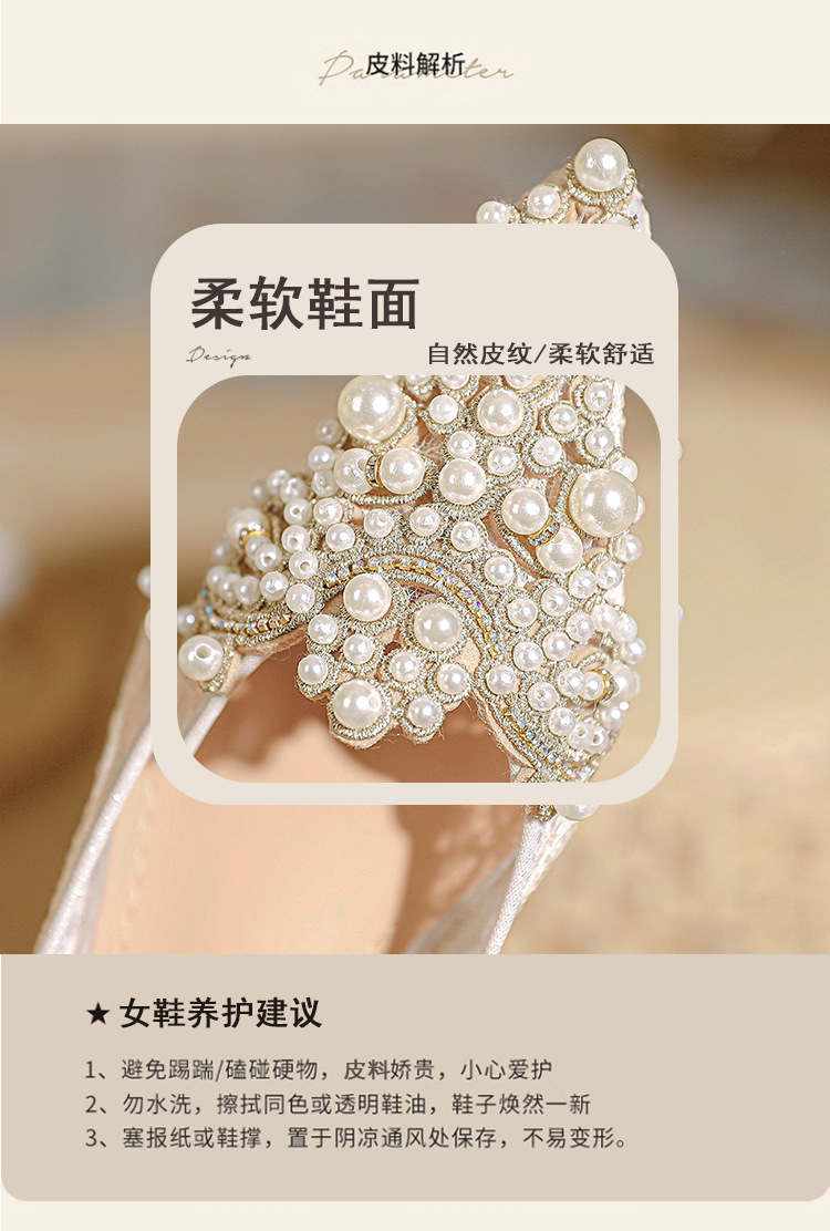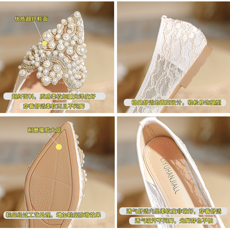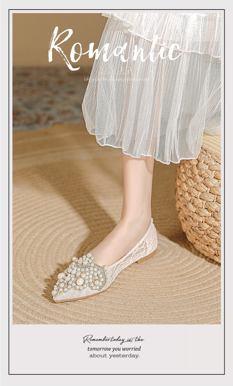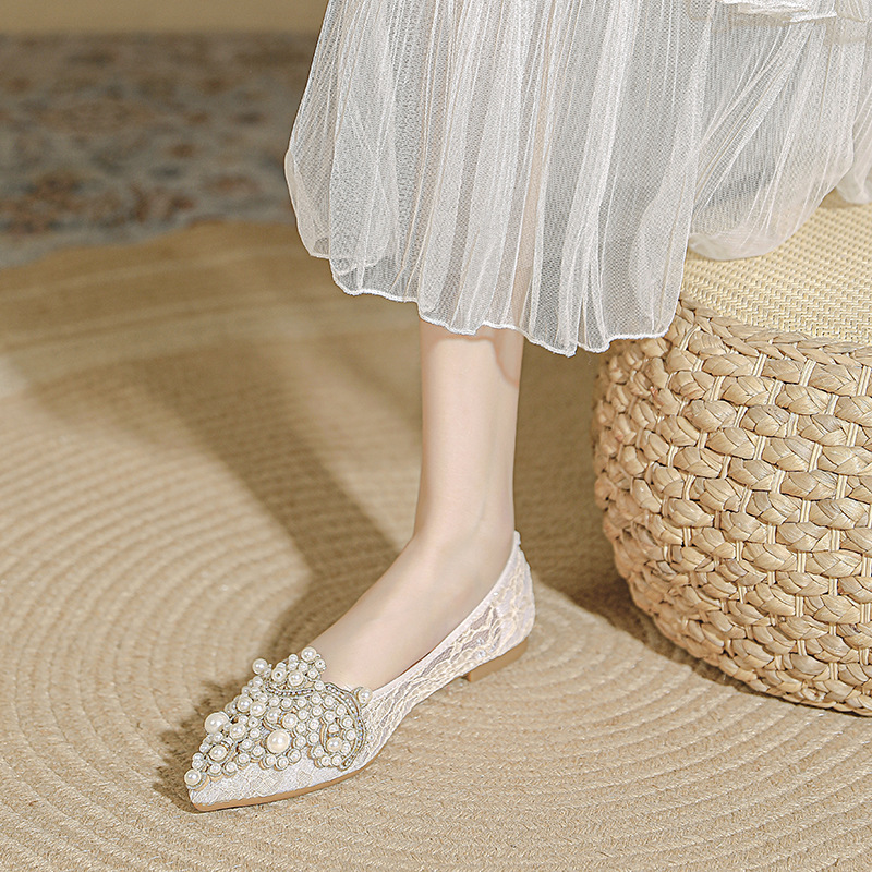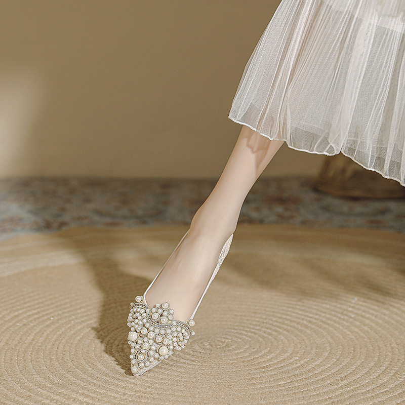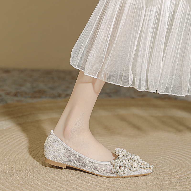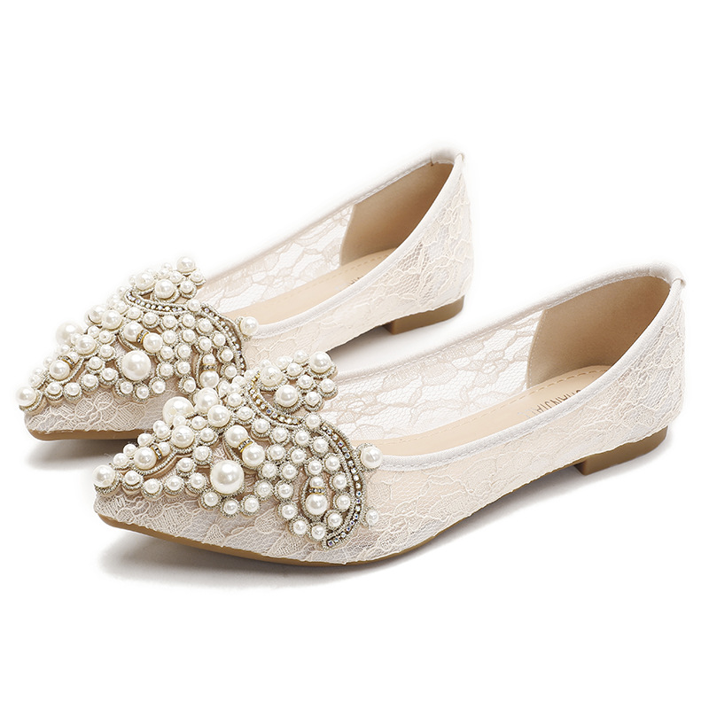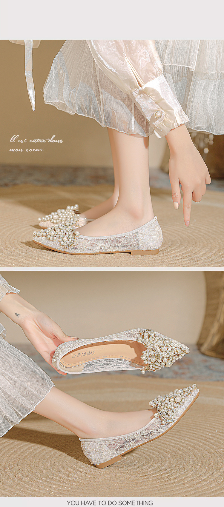 플랫 웨딩 슈즈 신부 신발 여성용 2025 신상 소프트 솔 뾰족코 얕은 굽 요정 스타일 부드러운 워터 드라이 핑크 슈즈 신부 들러리 신발