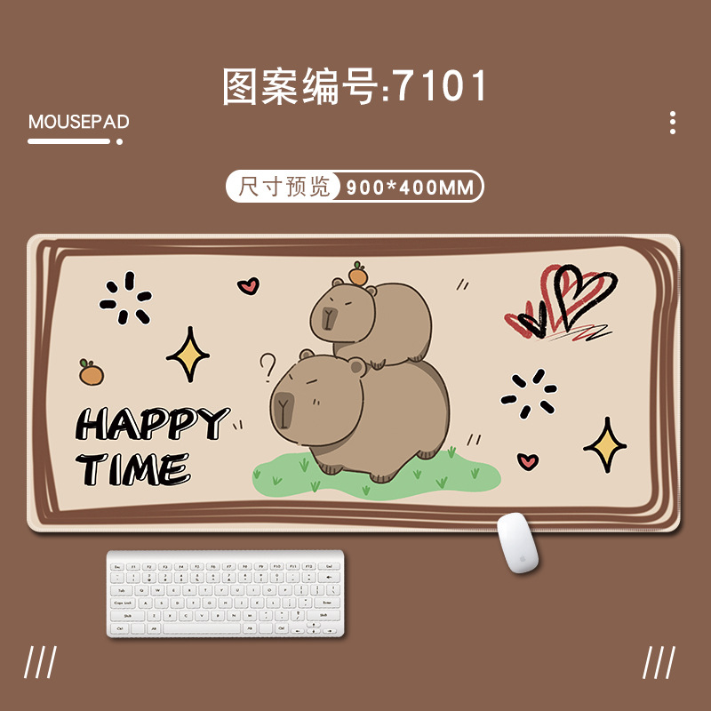 카피 바라 마우스 패드 대형 만화 만화 게임 전자 스포츠 두꺼운 잠금 가장자리 사무실 책상 패드 키보드 패드 귀여운