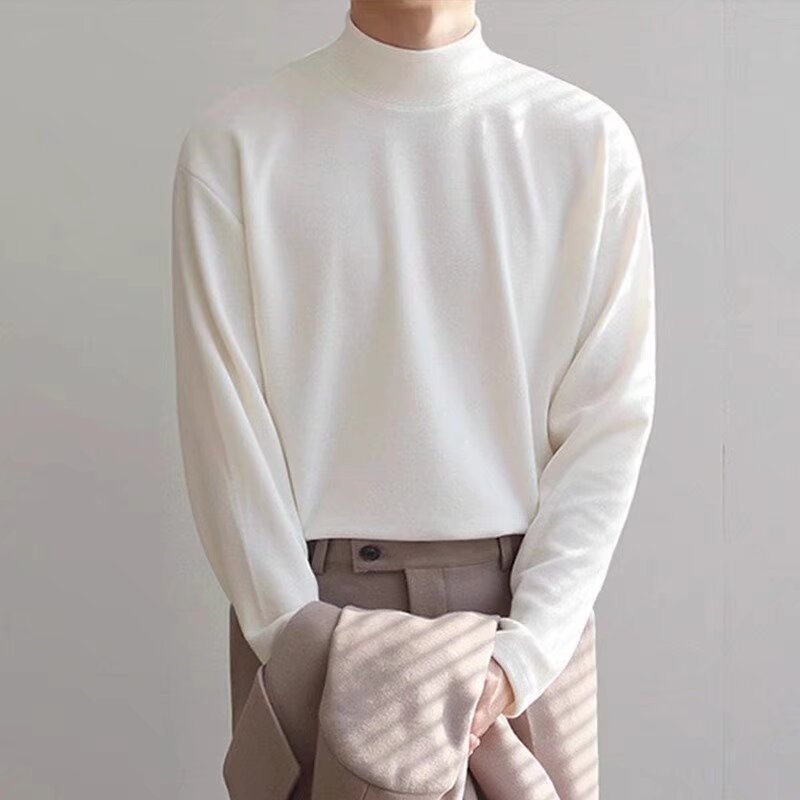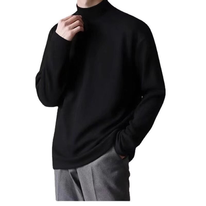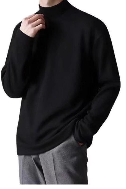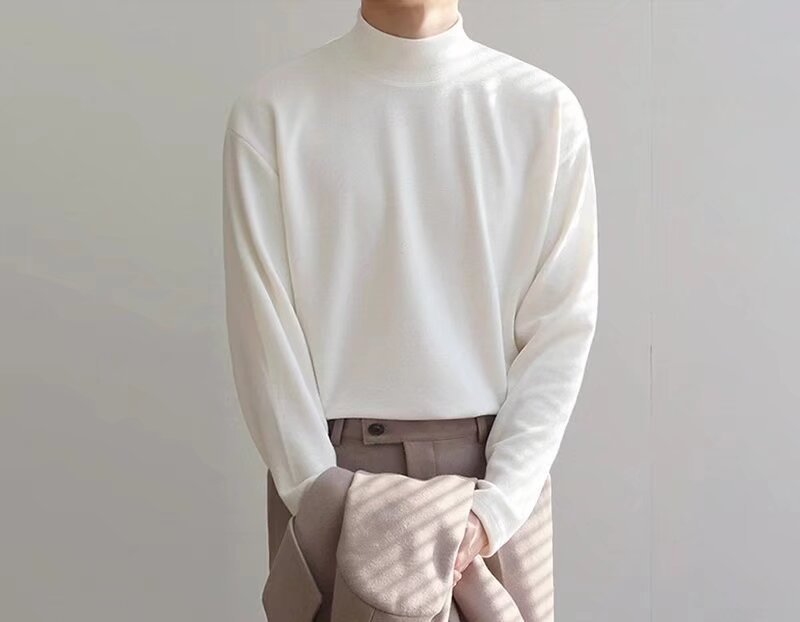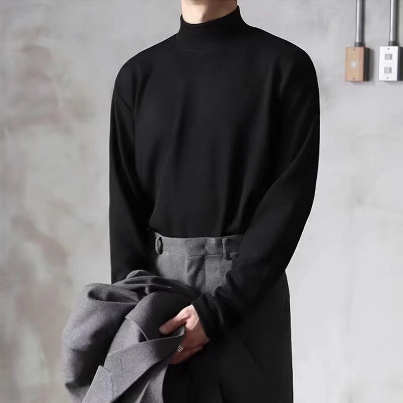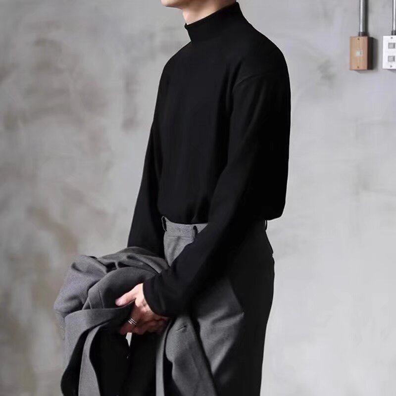 한국식 가을과 겨울 드 벨벳 하프 터틀넥 바닥 셔츠 남성용 느슨한 트렌디 한 이너 블랙 미드 터틀넥 가을 긴팔 티셔츠