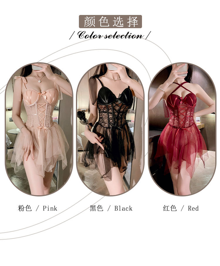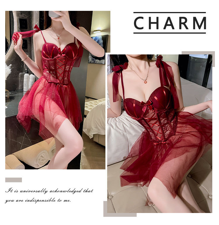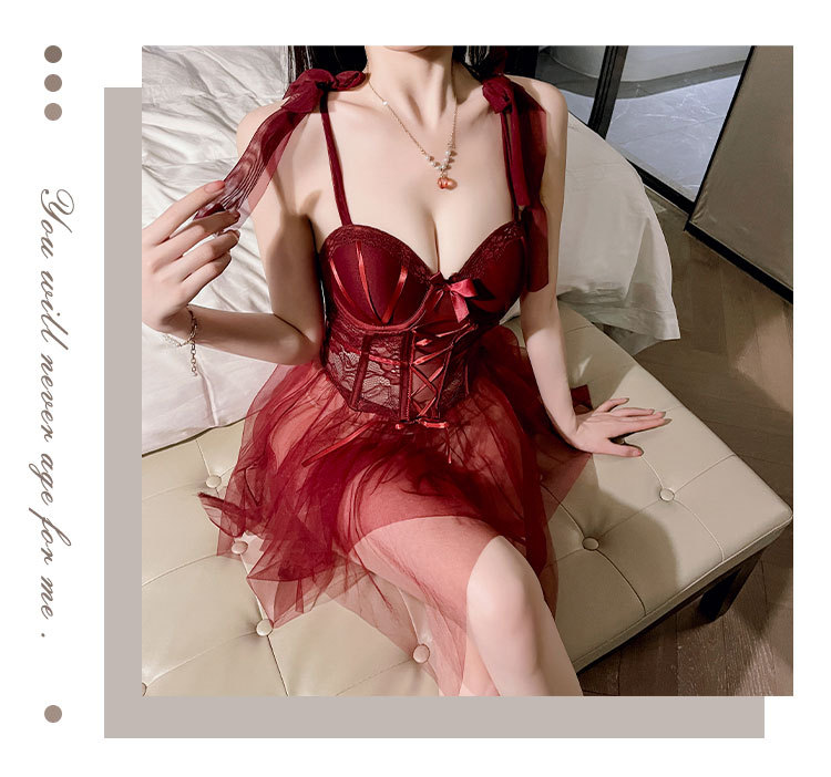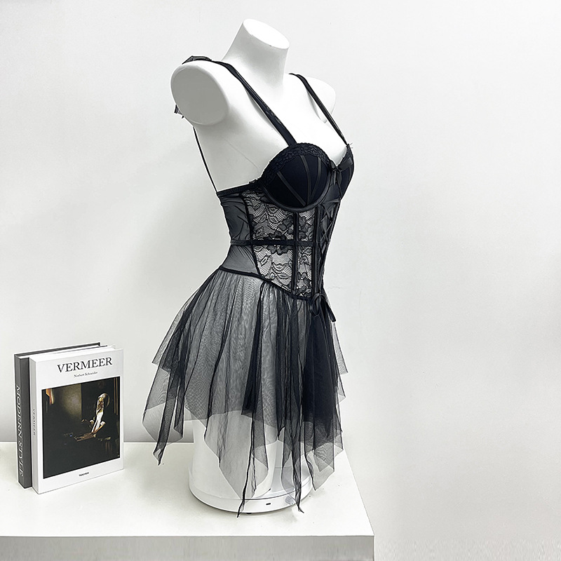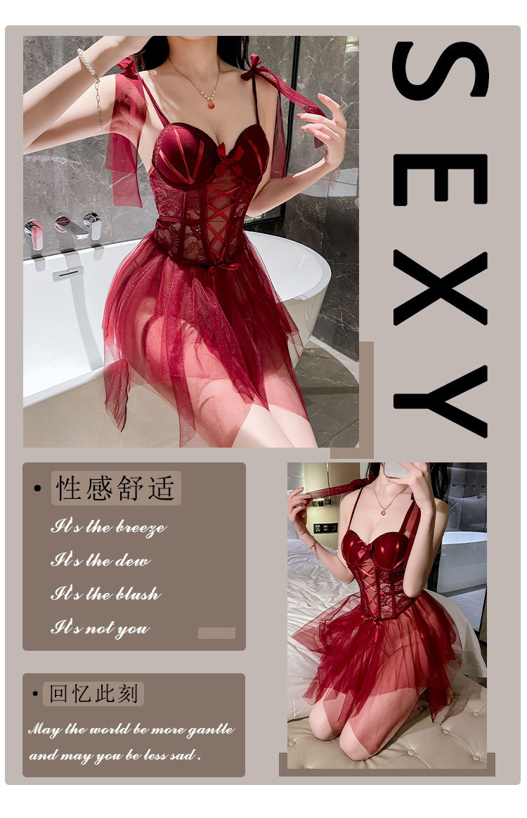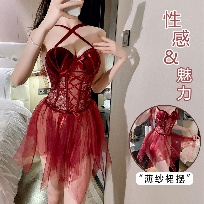 Bafei 새로운 스타일 섹시한 속옷 섹시한 메쉬 관점 플러스 가슴 패드 강철 반지 모임 슬링 Nightdress 여자 세트 195