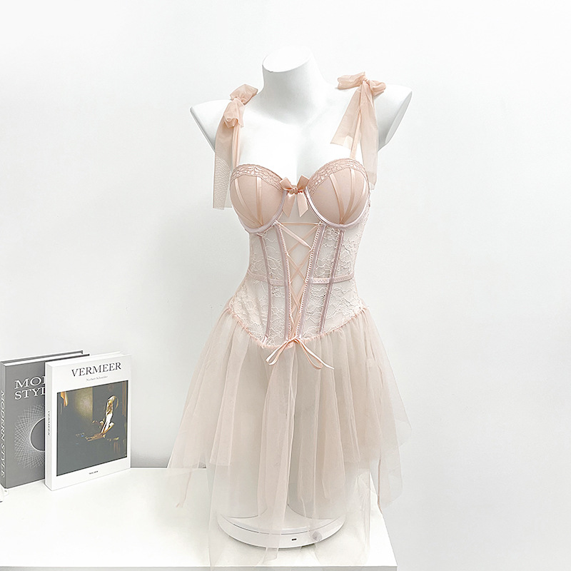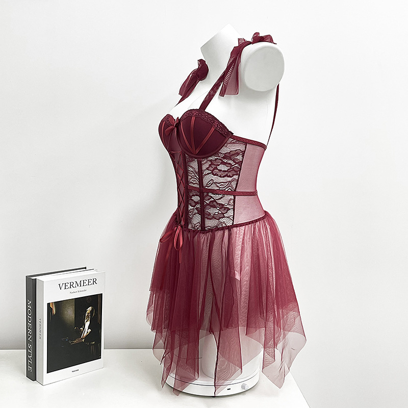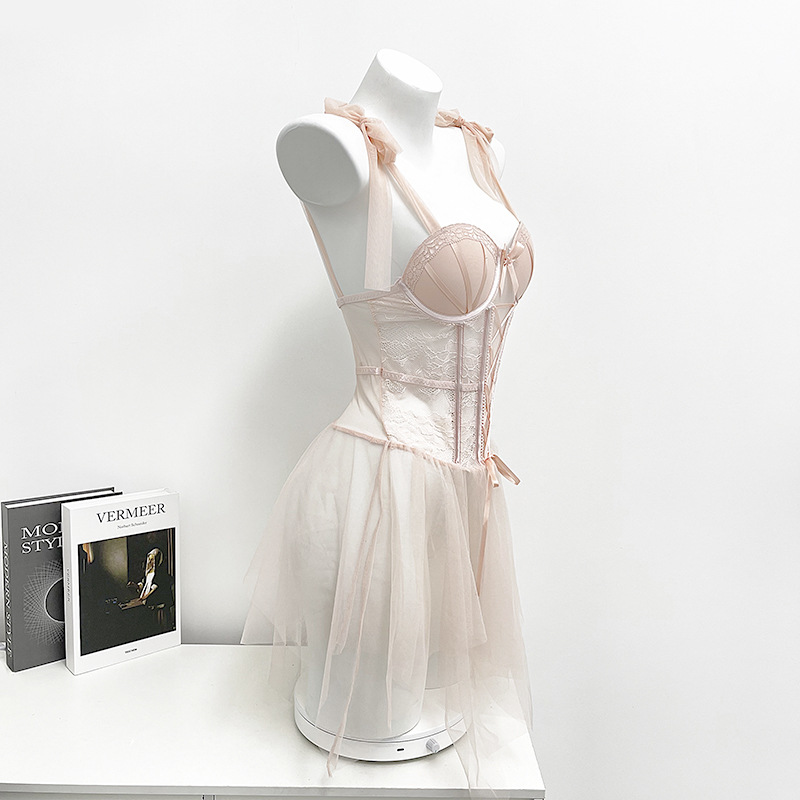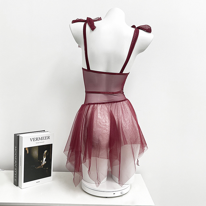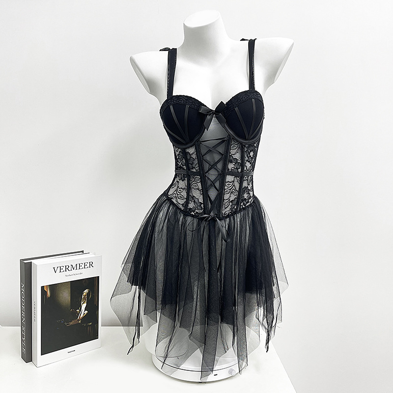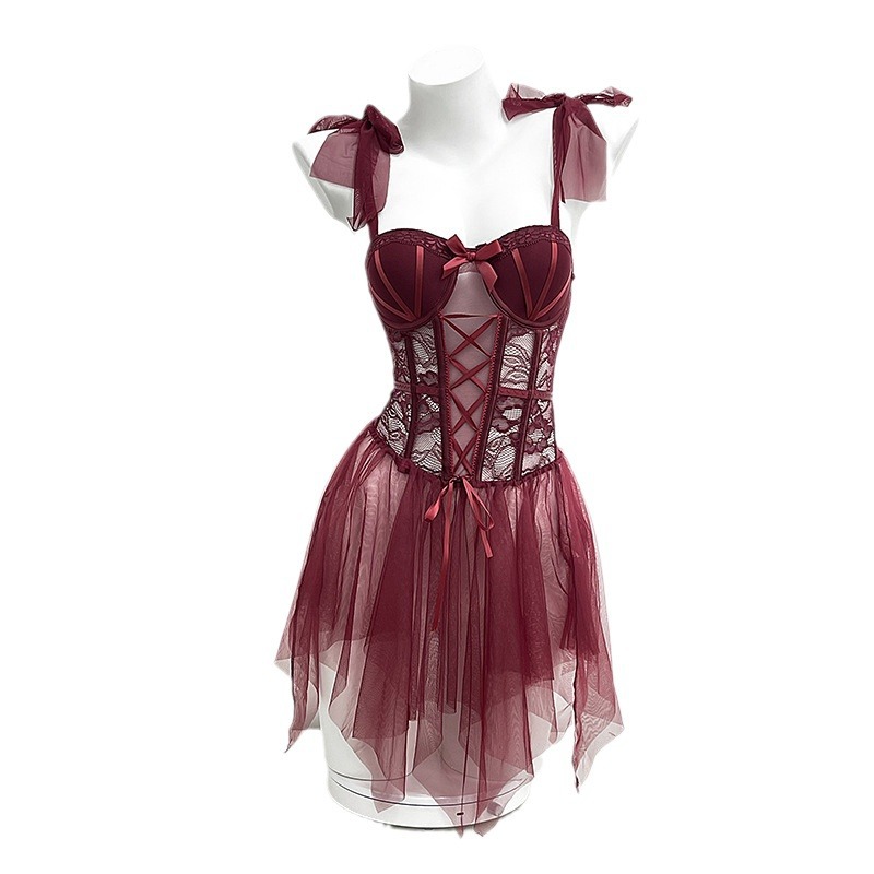 Bafei 새로운 스타일 섹시한 속옷 섹시한 메쉬 관점 플러스 가슴 패드 강철 반지 모임 슬링 Nightdress 여자 세트 195