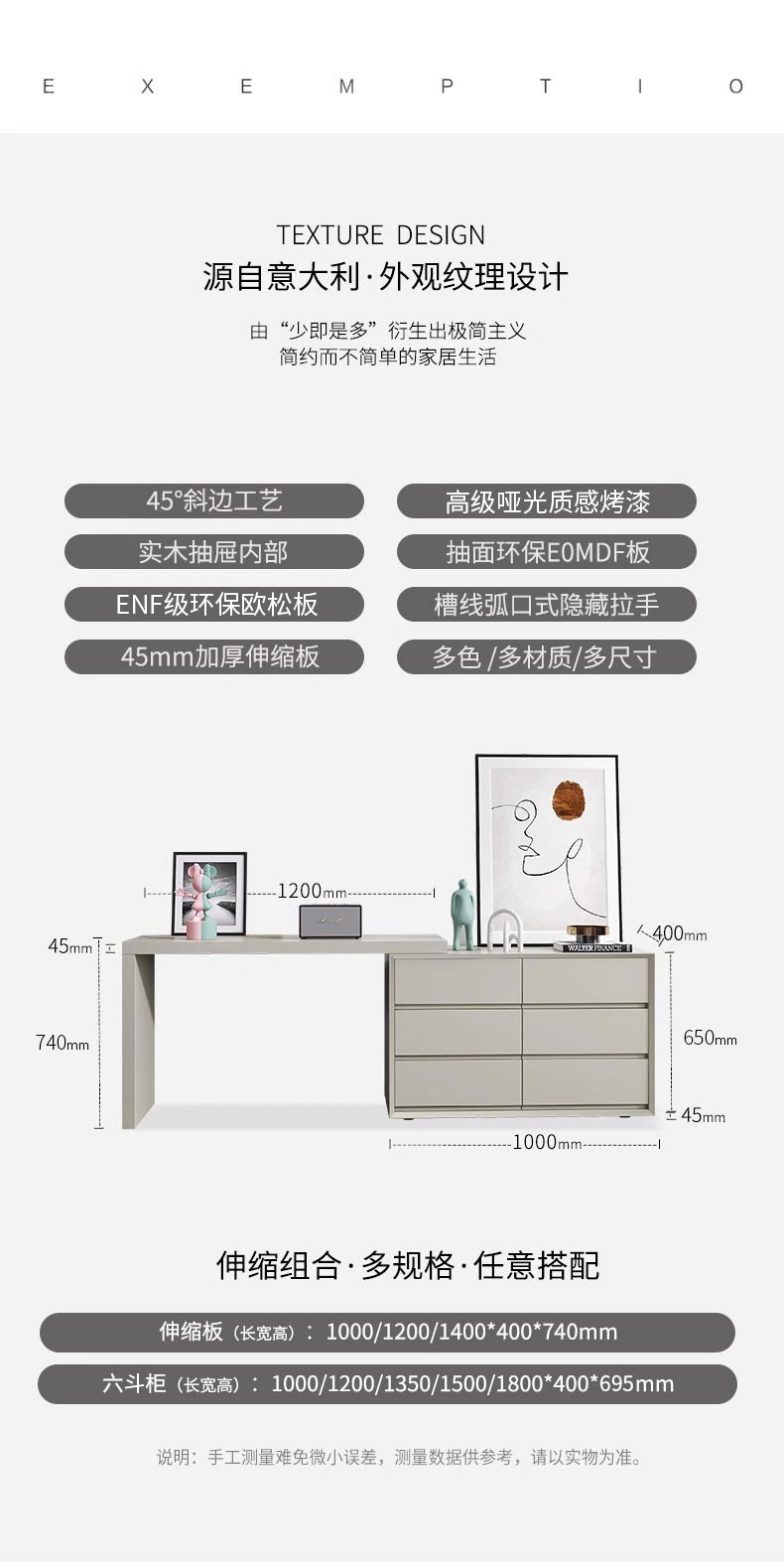 이탈리아 옷장 책상 조합 현대 컴퓨터 책상 옆 서랍장 개폐식 침실 다기능 단단한 목재 보관
