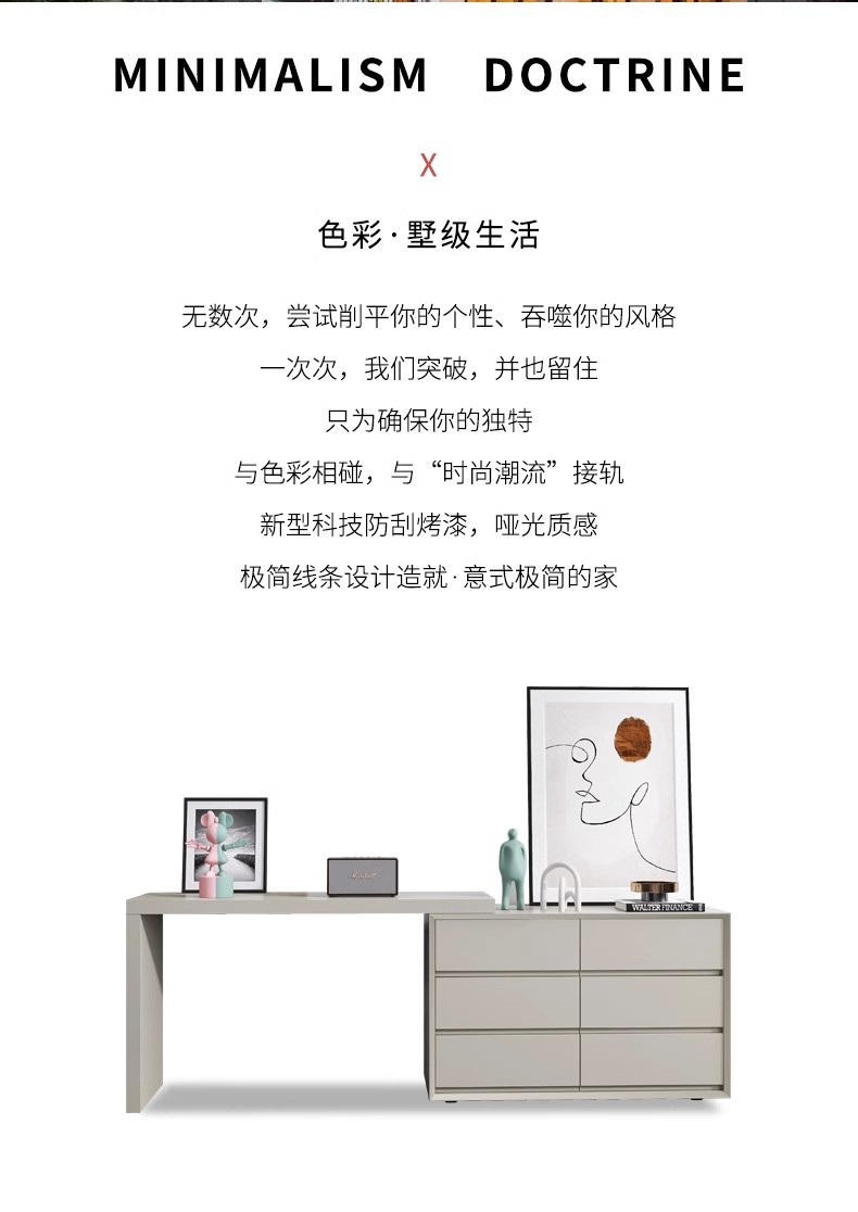 드레서 1.0 m + 6 서랍 캐비닛 1.0 m (이탈리아 베이지 회색 전체 페인트)