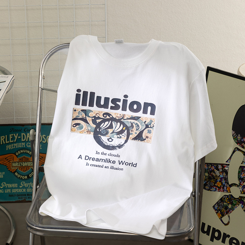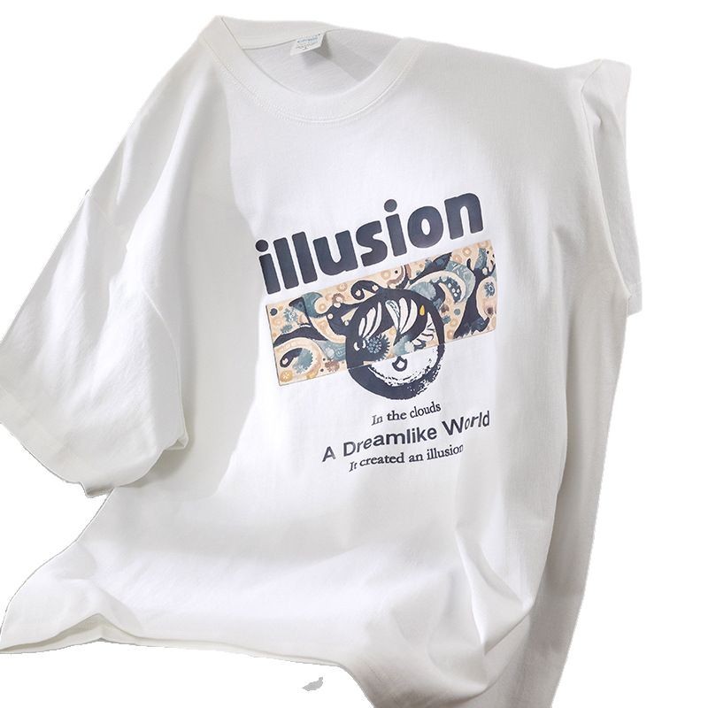 220g 백 칼라 퓨어 코튼 반팔 티셔츠 여성 캐주얼 루즈 플러스 사이즈 여성 신작 반팔 여름 탑