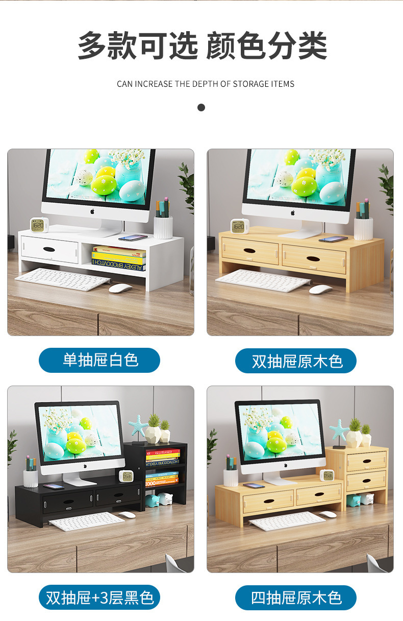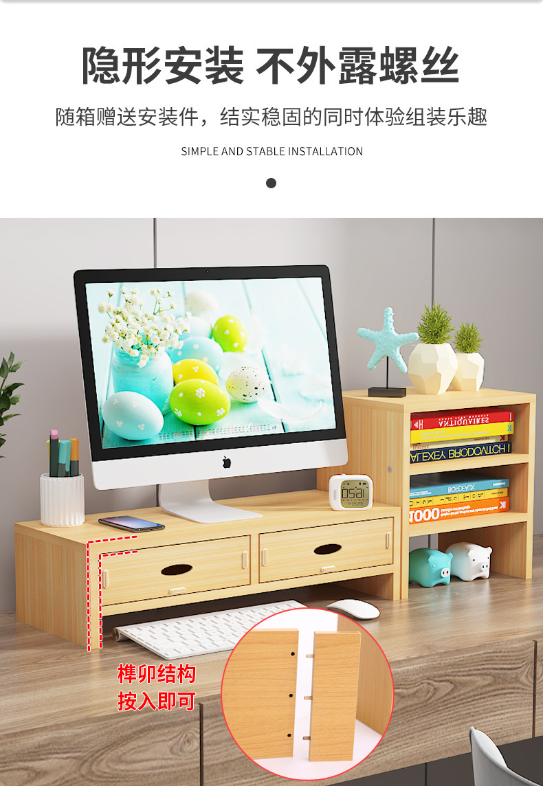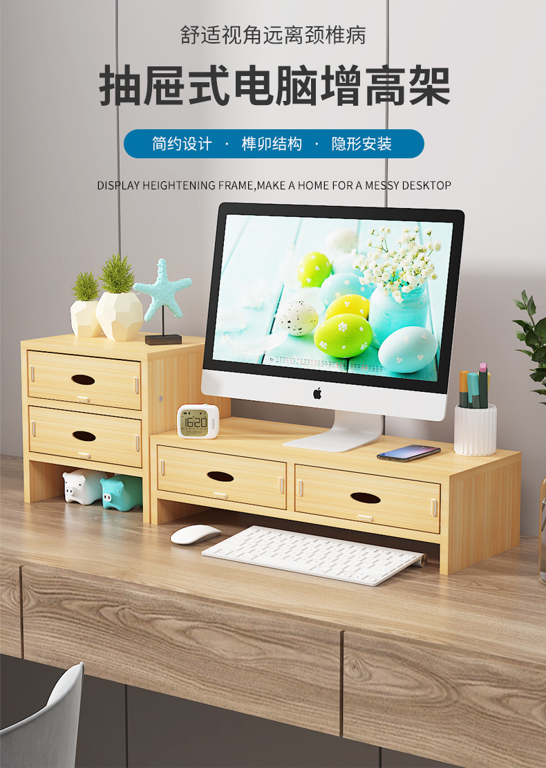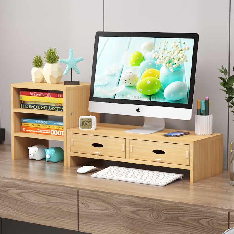 기본 데스크톱 사무실 데스크탑 스탠드 디스플레이 컴퓨터 서랍 모니터 오버 헤드 화면이있는 책상을 올렸습니다.