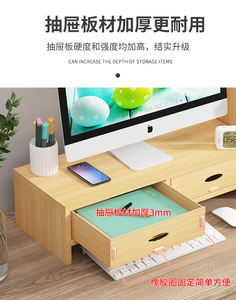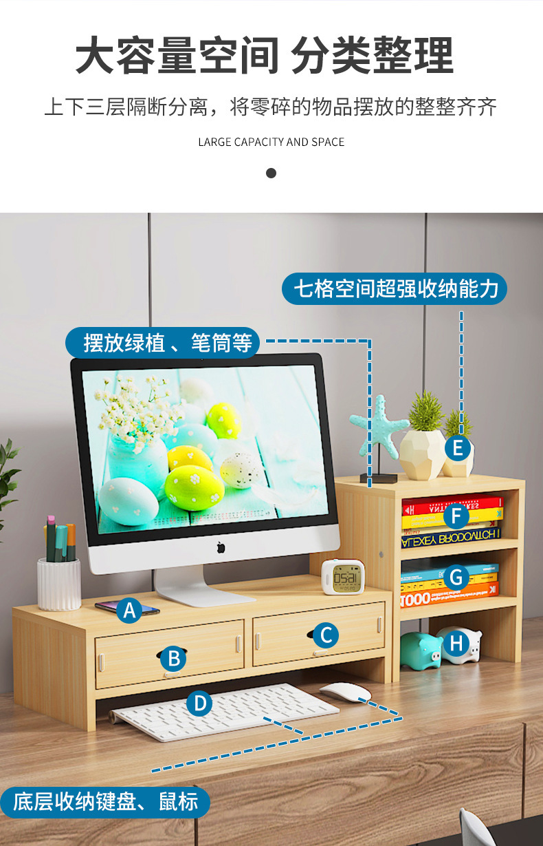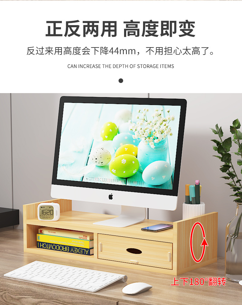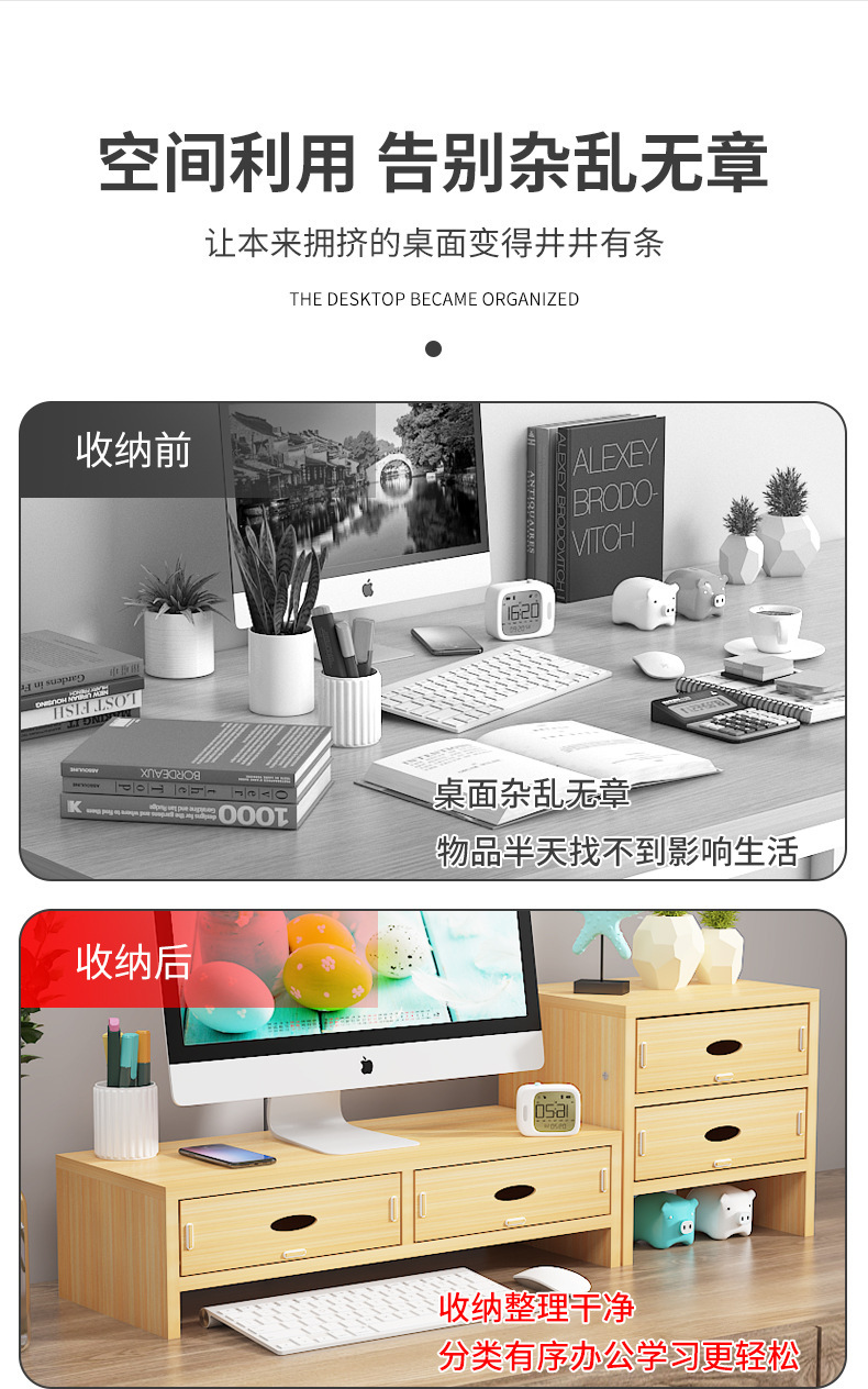 기본 데스크톱 사무실 데스크탑 스탠드 디스플레이 컴퓨터 서랍 모니터 오버 헤드 화면이있는 책상을 올렸습니다.