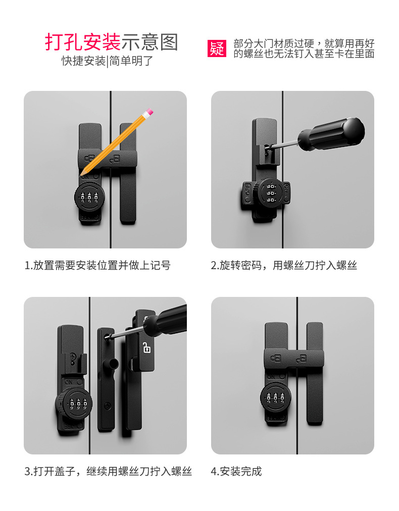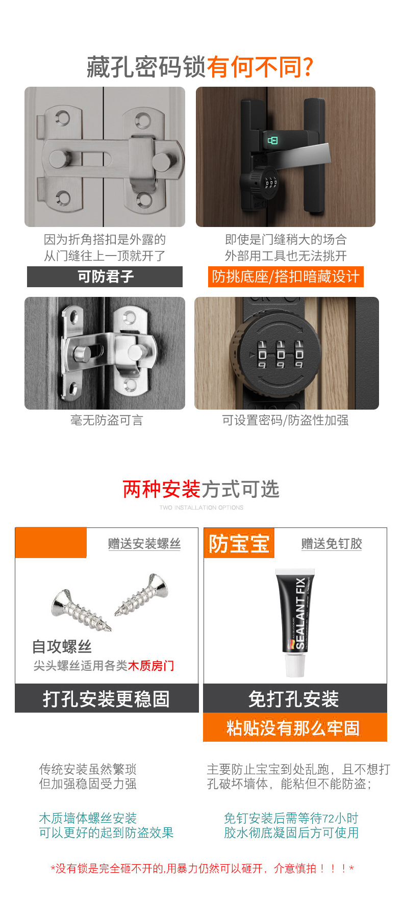 펀치없는 암호 캐비닛 잠금 방지 이중 도어 유리 옷장 도어 잠금 서랍 잠금 범용 냉장고 잠금 캐비닛 잠금 장치