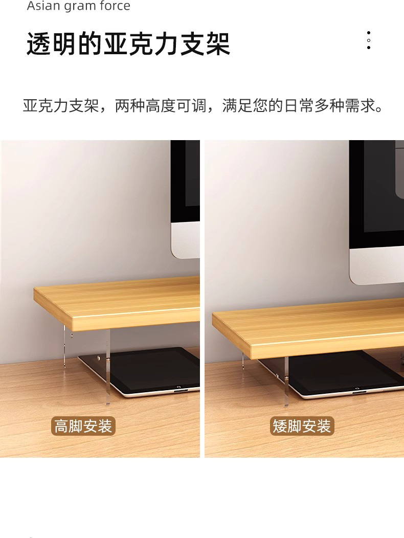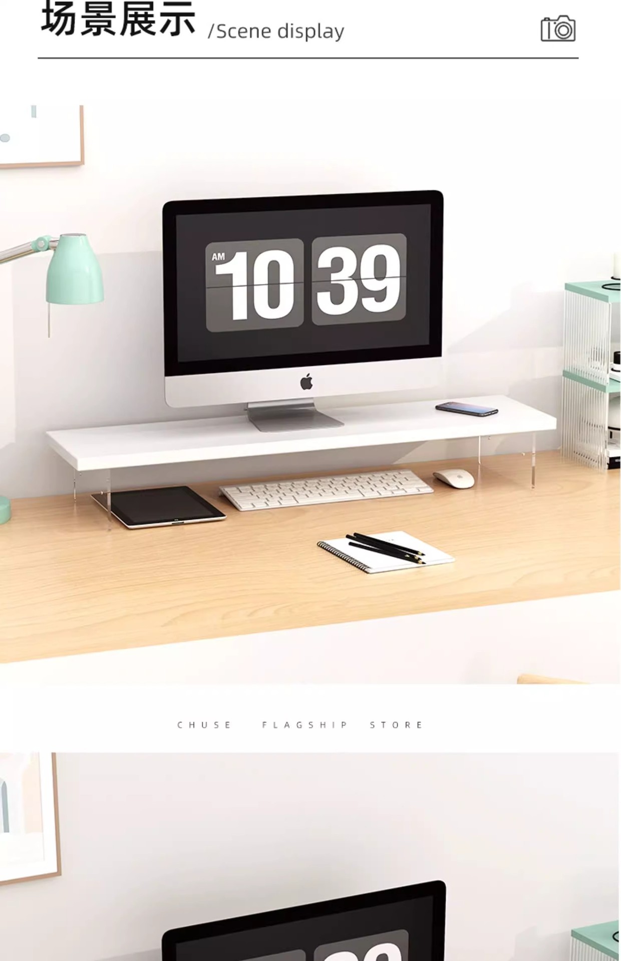 아크릴 컴퓨터 높은 데스크탑 모니터 스크린 브래킷 기본 사무실 책상 스토리지 랙 스토리지 제기