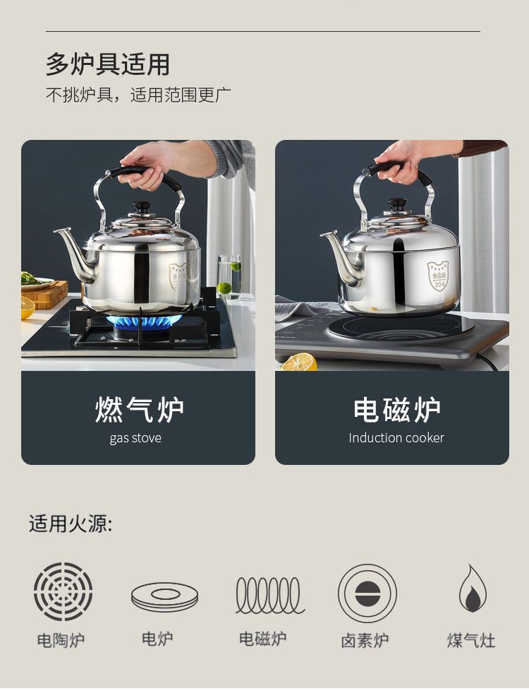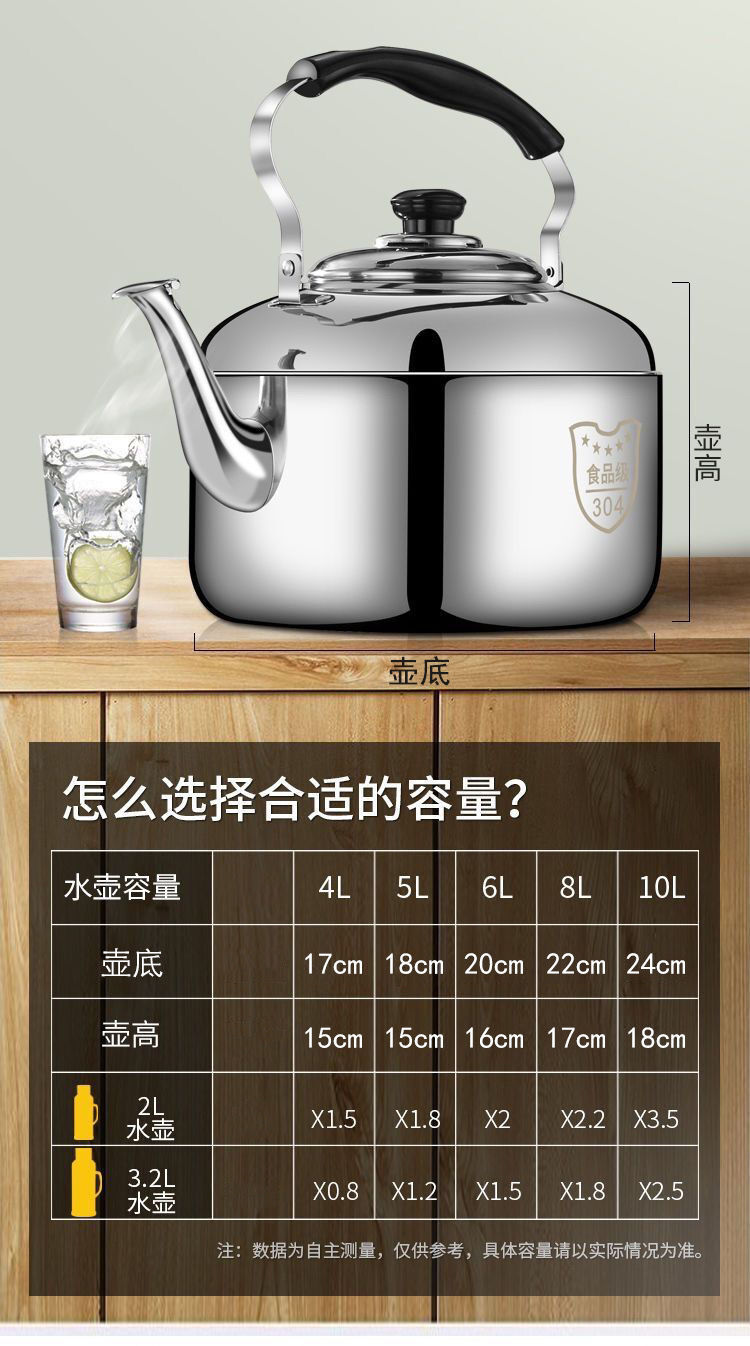 스테인레스 스틸 주전자 대용량 물 휘파람 가스 스토브 유도 밥솥 가정용 주전자 상업용 수프 냄비