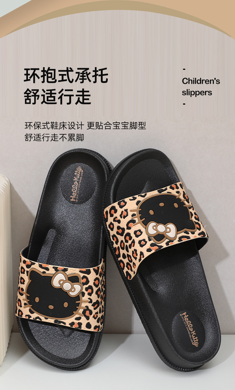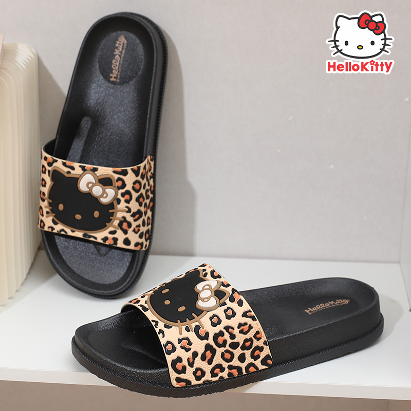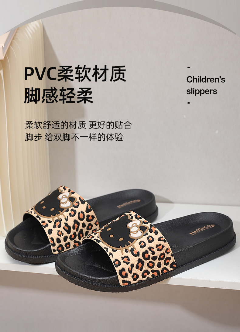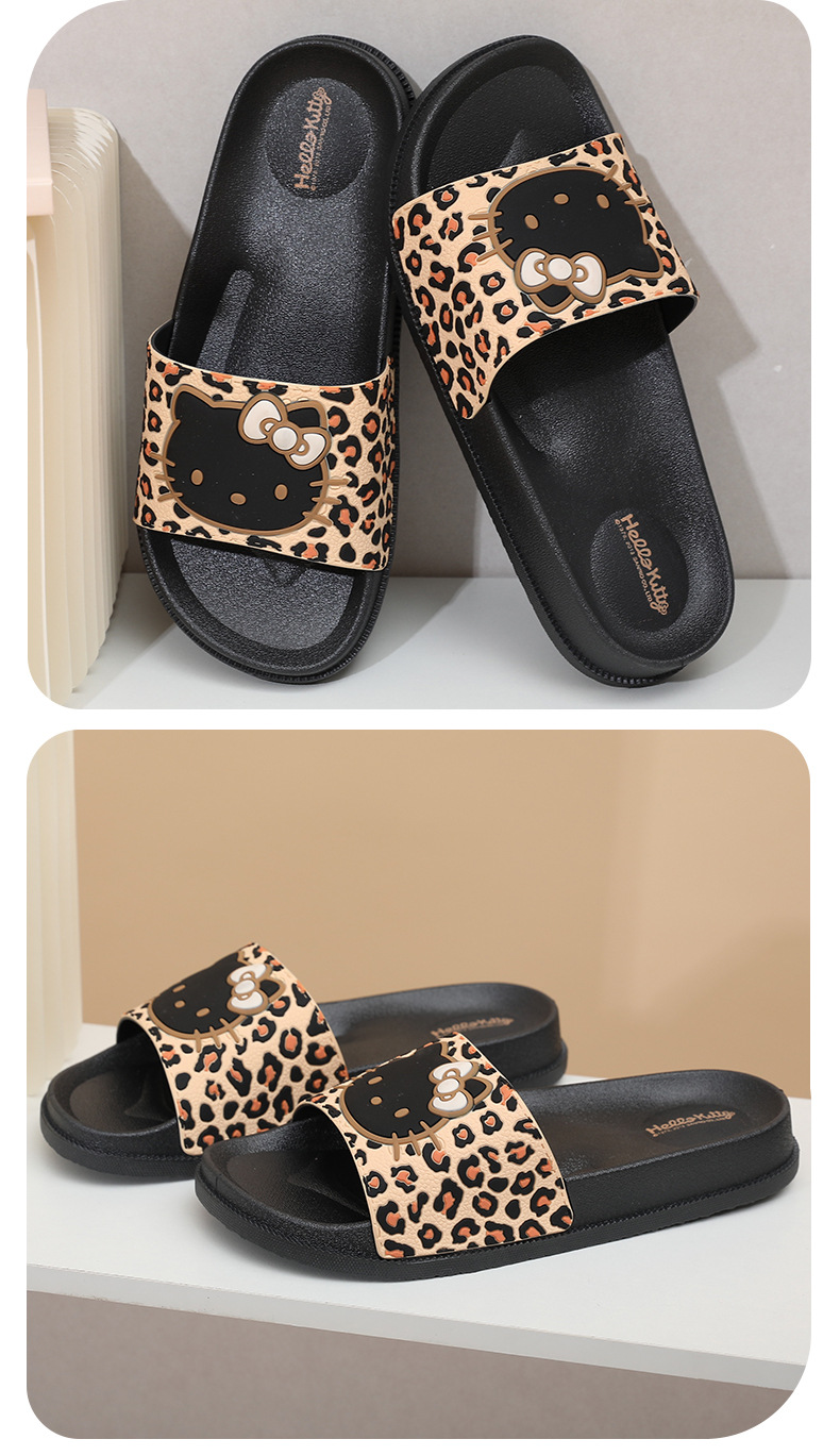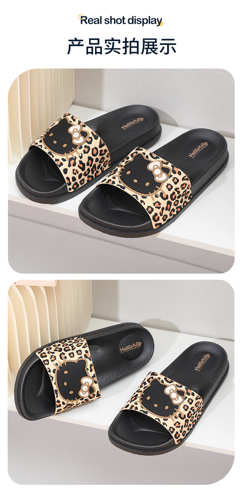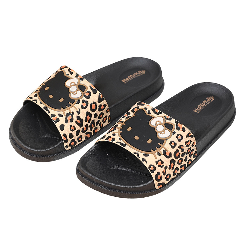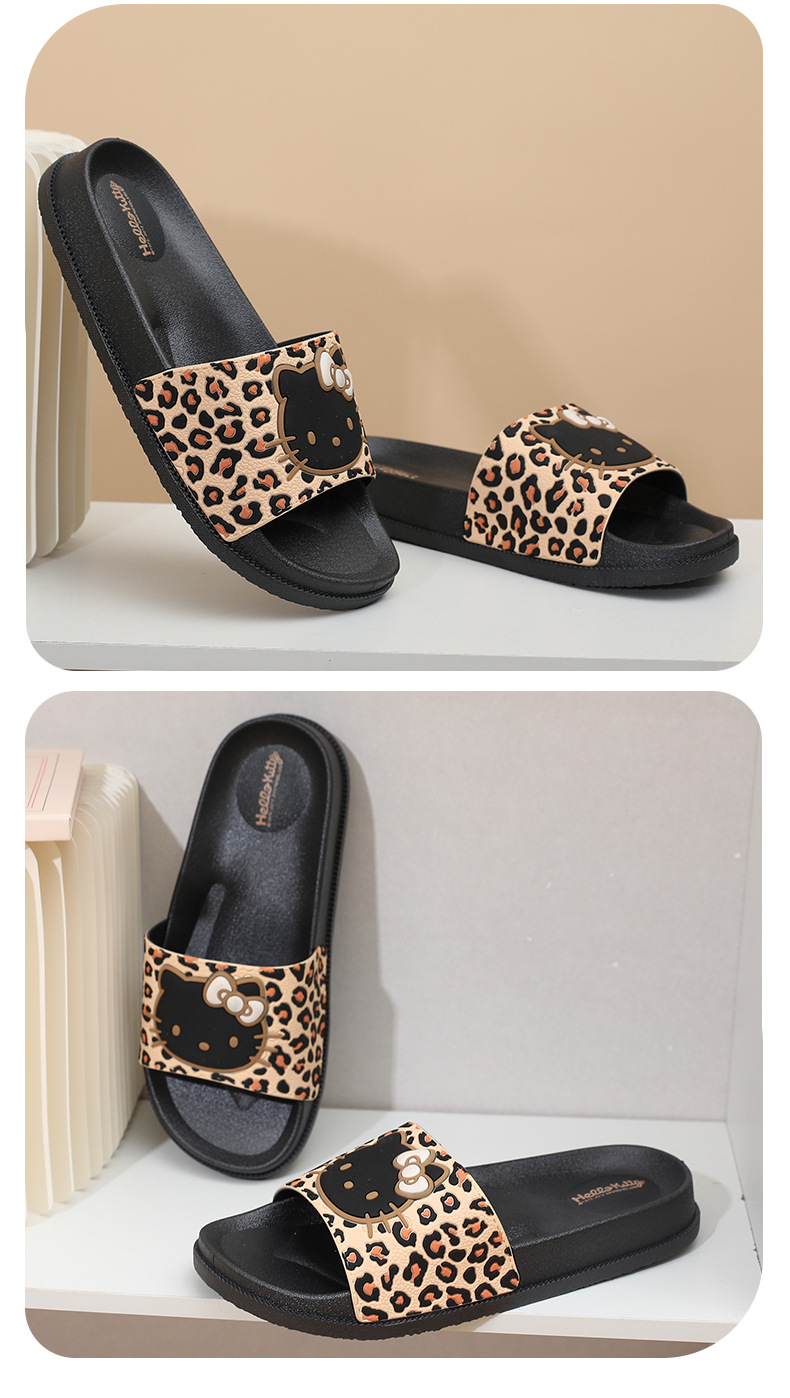 Hellokitty 맞춤형 틈새 대비 색상 레오파드 무늬 만화 플랫 슬리퍼 소녀의 여름 집 미끄럼 방지 겉옷