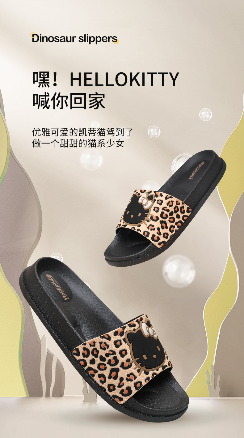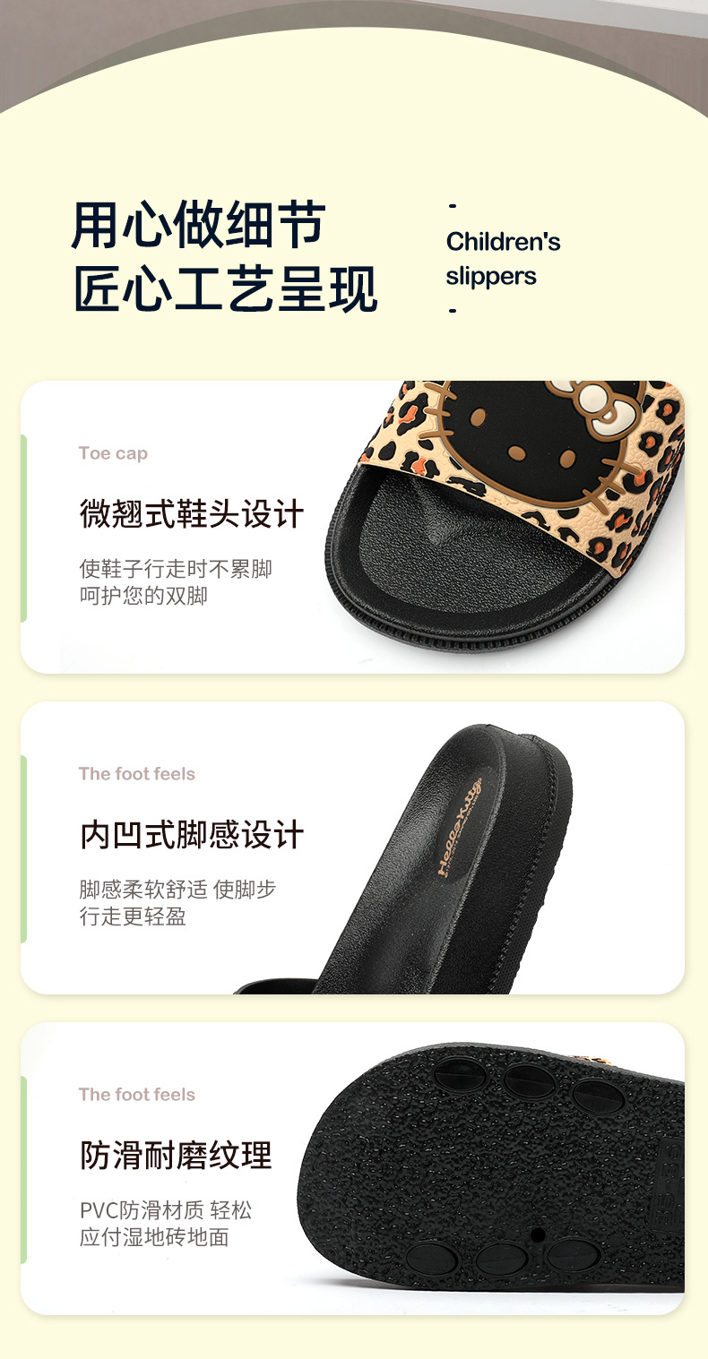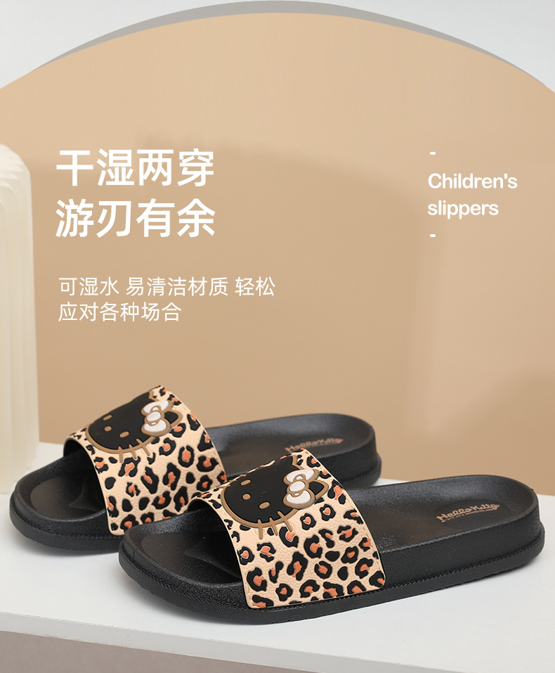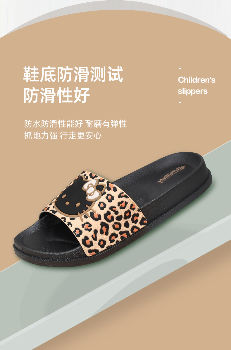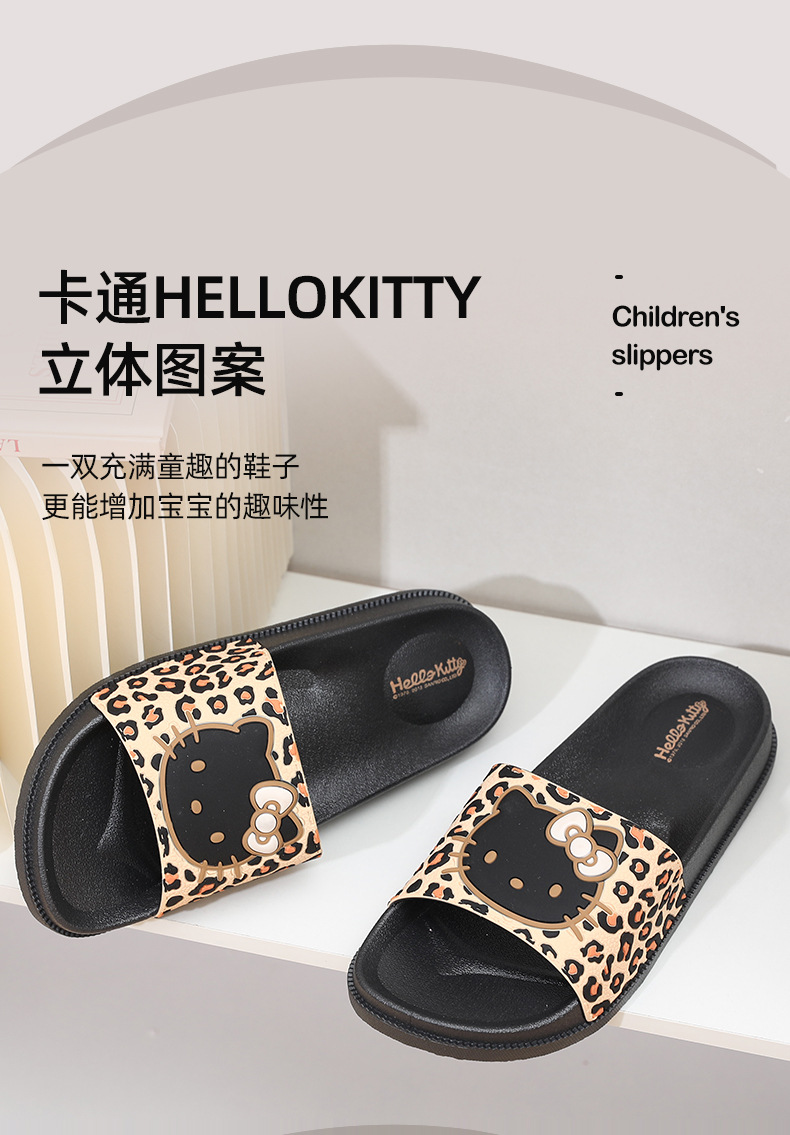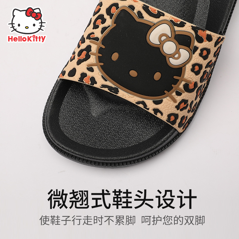 Hellokitty 맞춤형 틈새 대비 색상 레오파드 무늬 만화 플랫 슬리퍼 소녀의 여름 집 미끄럼 방지 겉옷