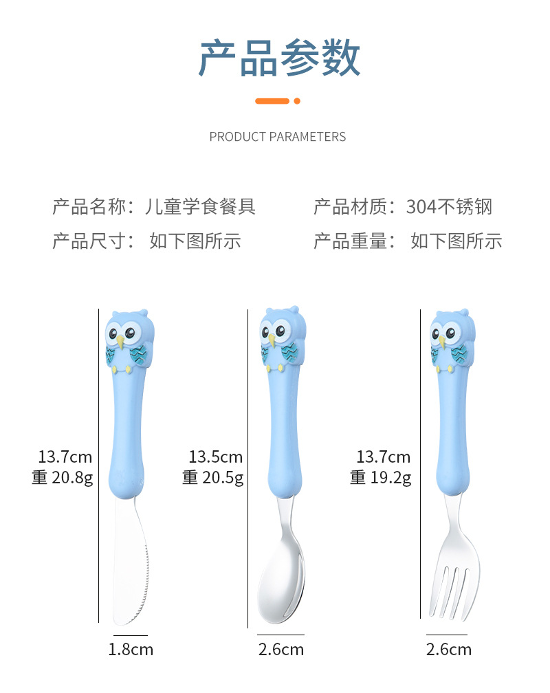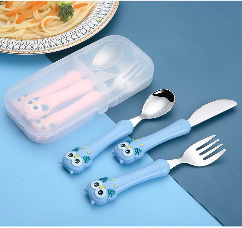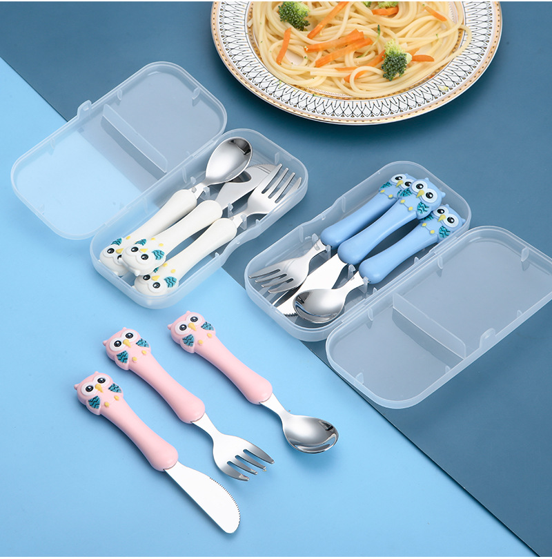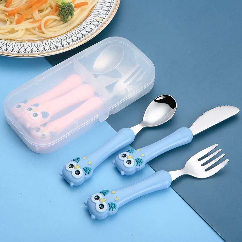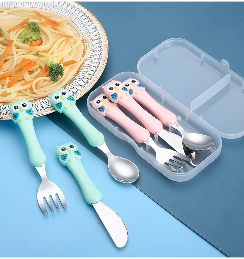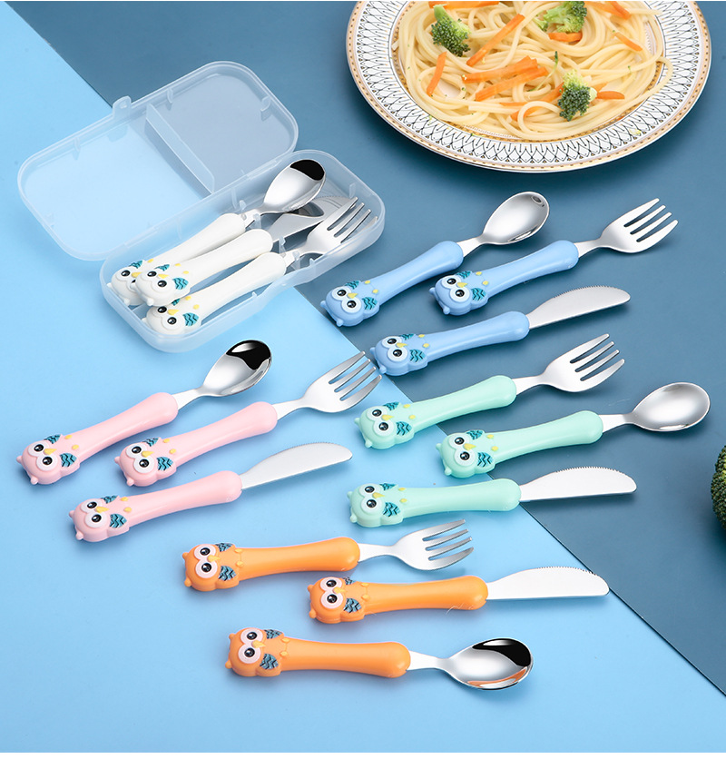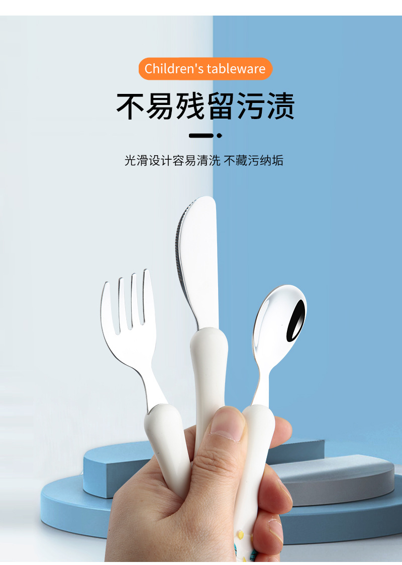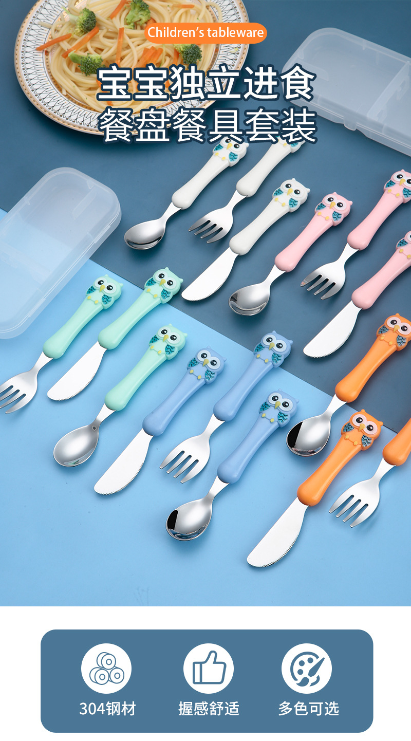 304 스테인레스 스틸 어린이 칼, 포크 및 스푼 304 휴대용 식기 높은 모양의 만화 아기 플레이트 3 피스 세트
