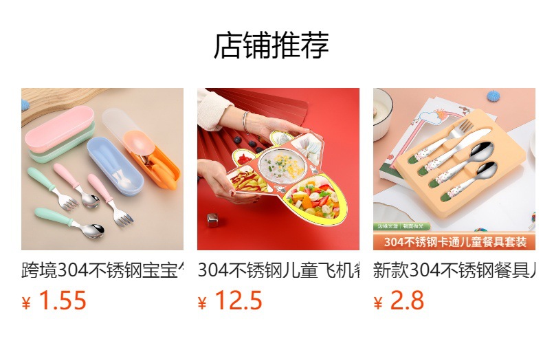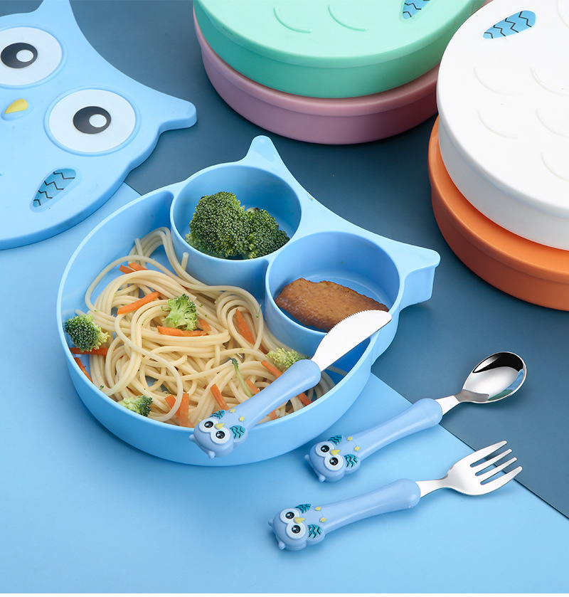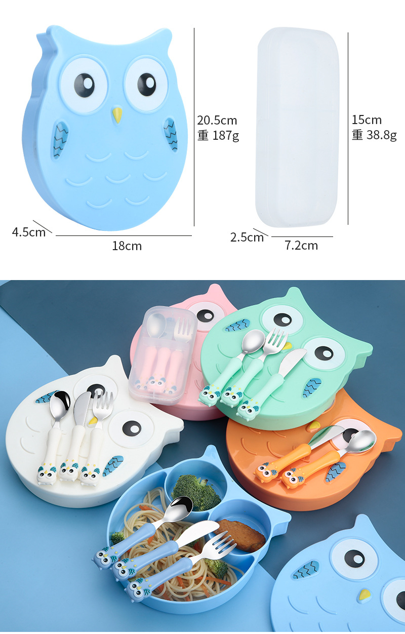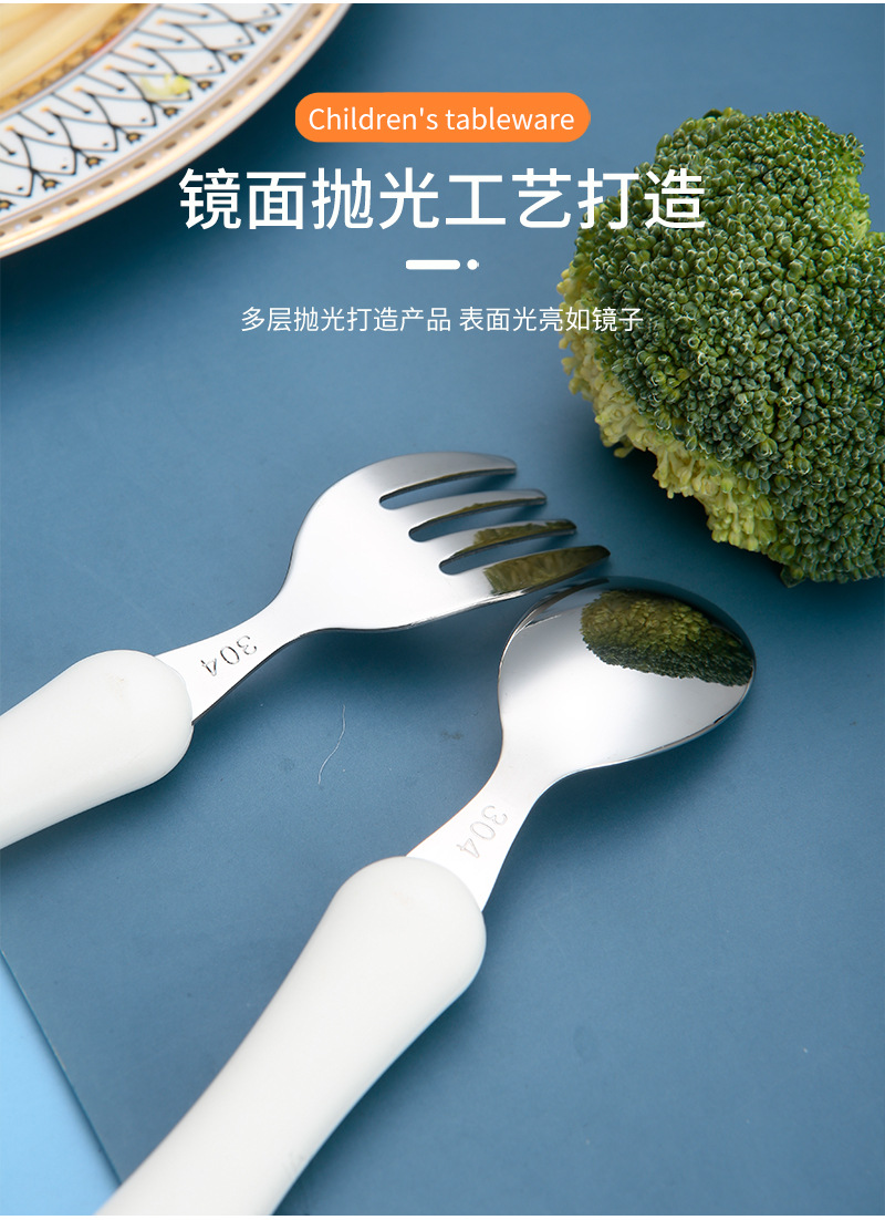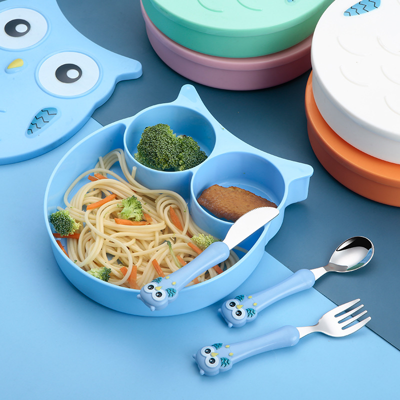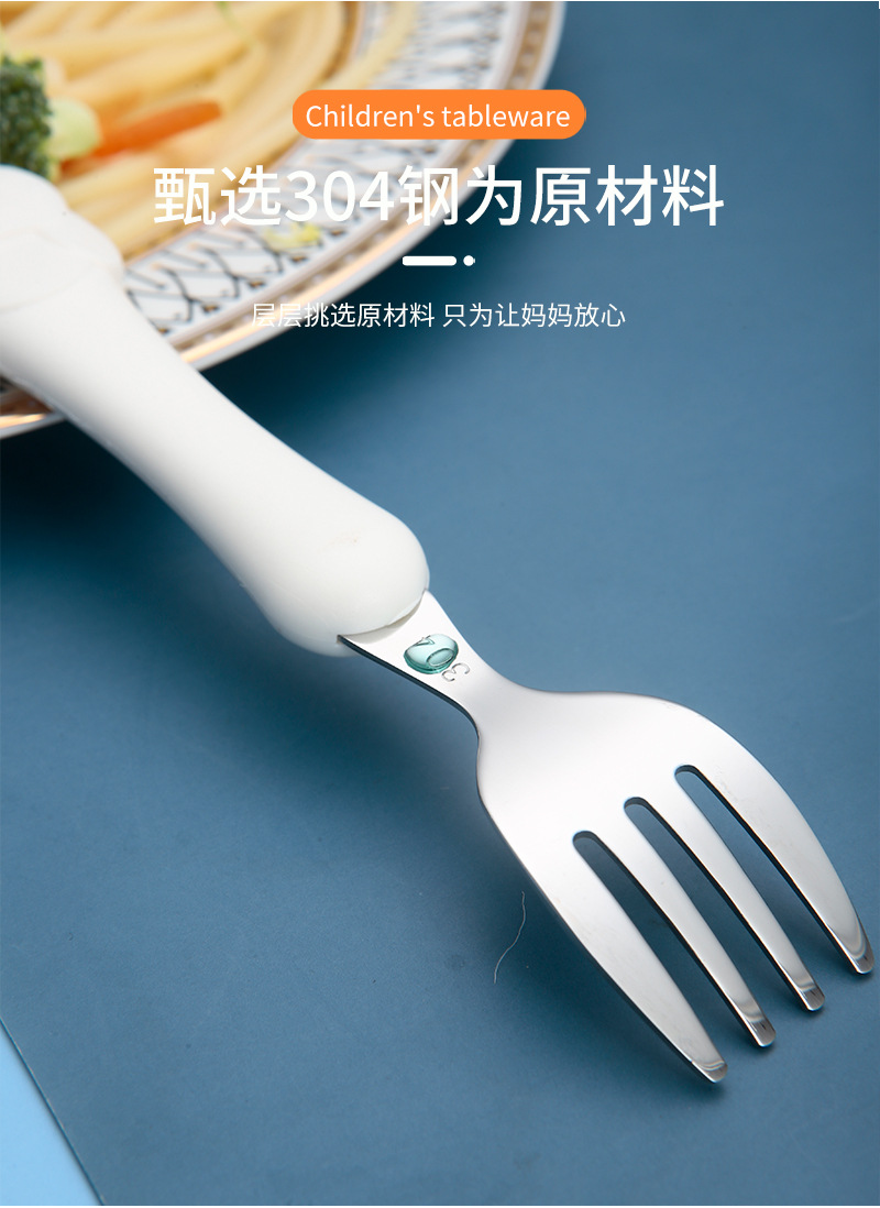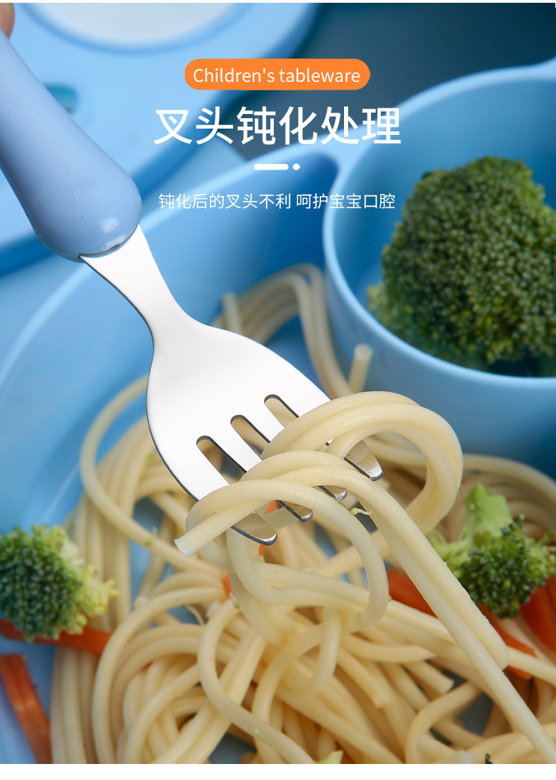 304 스테인레스 스틸 어린이 칼, 포크 및 스푼 304 휴대용 식기 높은 모양의 만화 아기 플레이트 3 피스 세트
