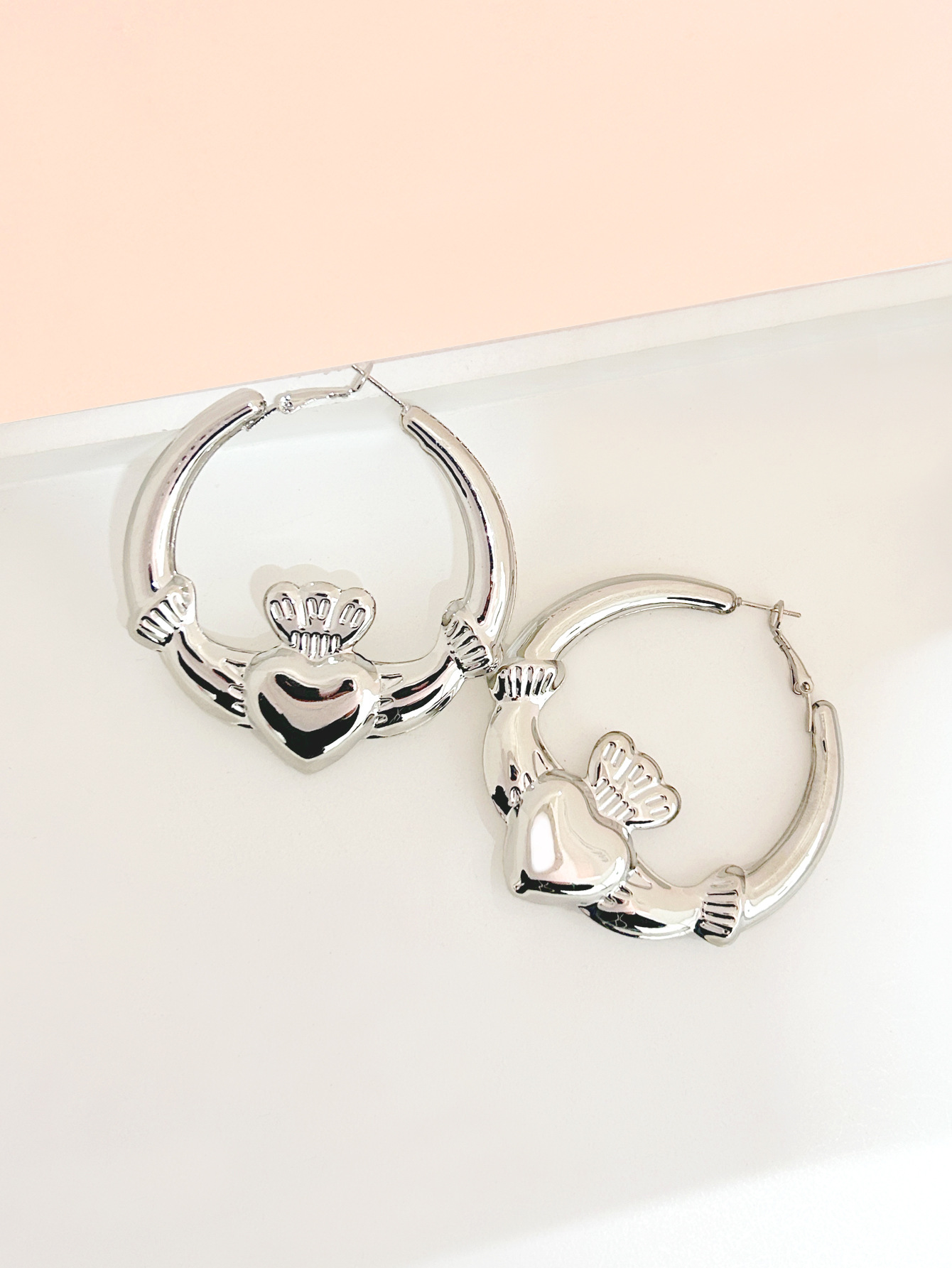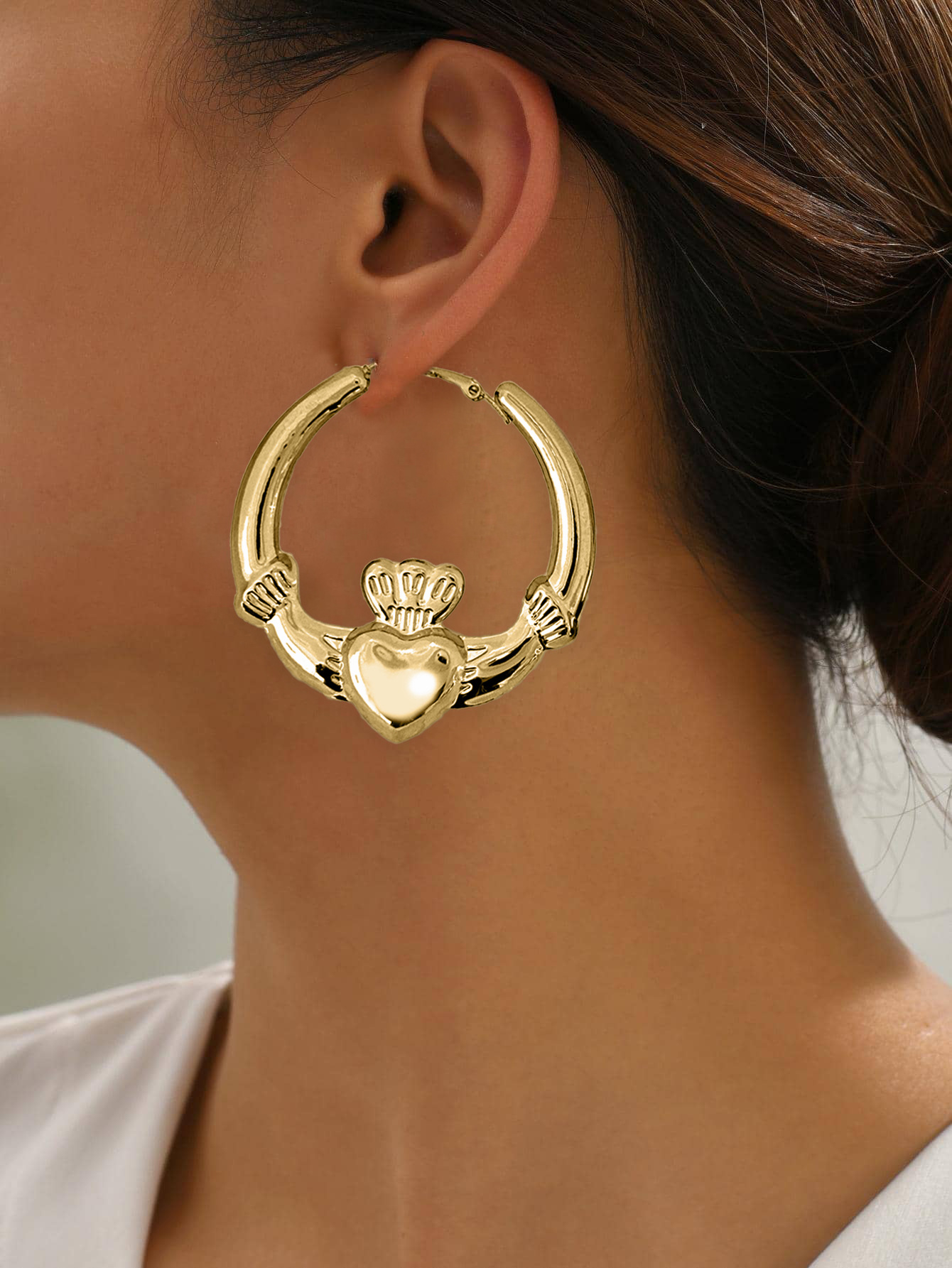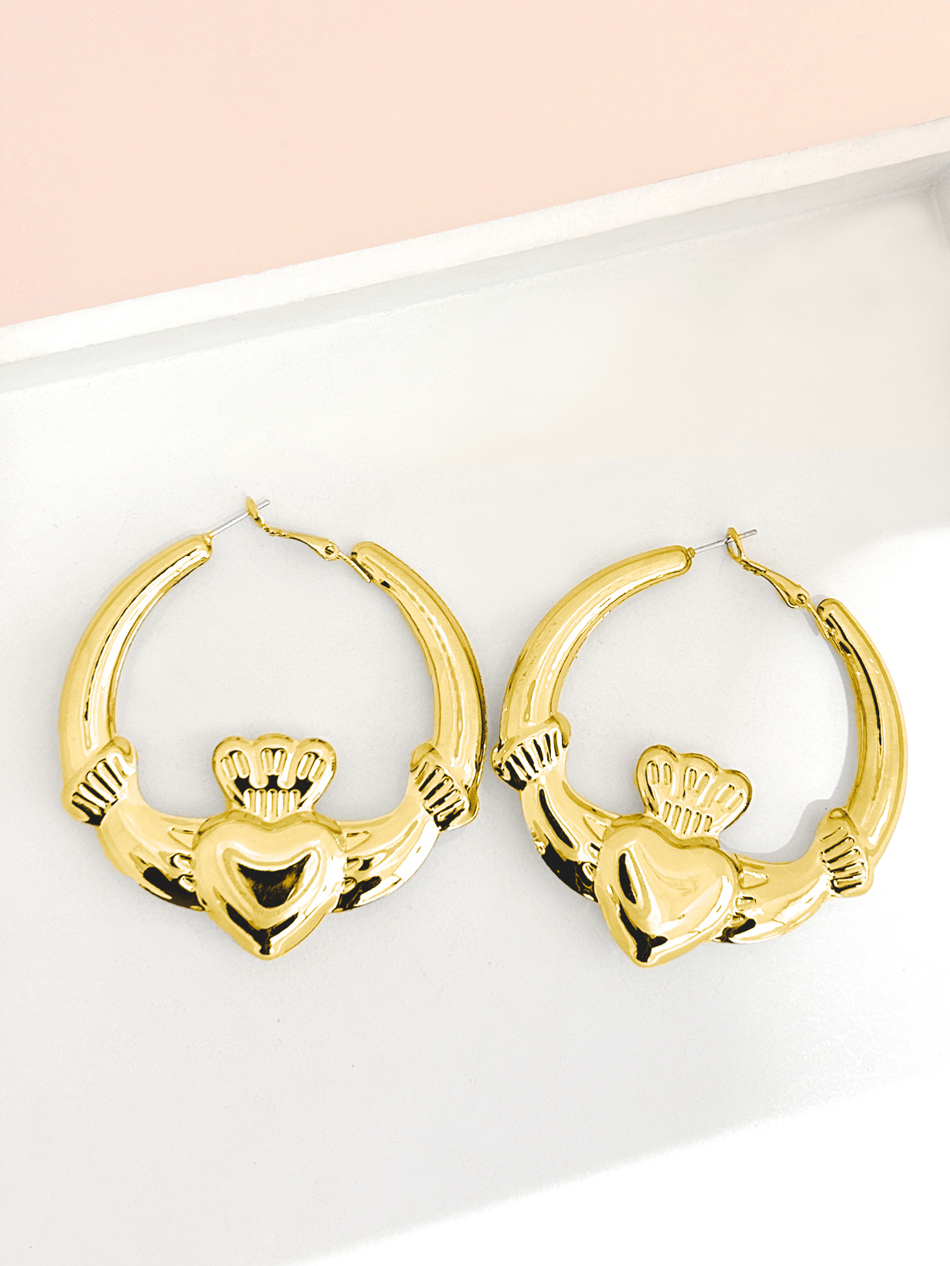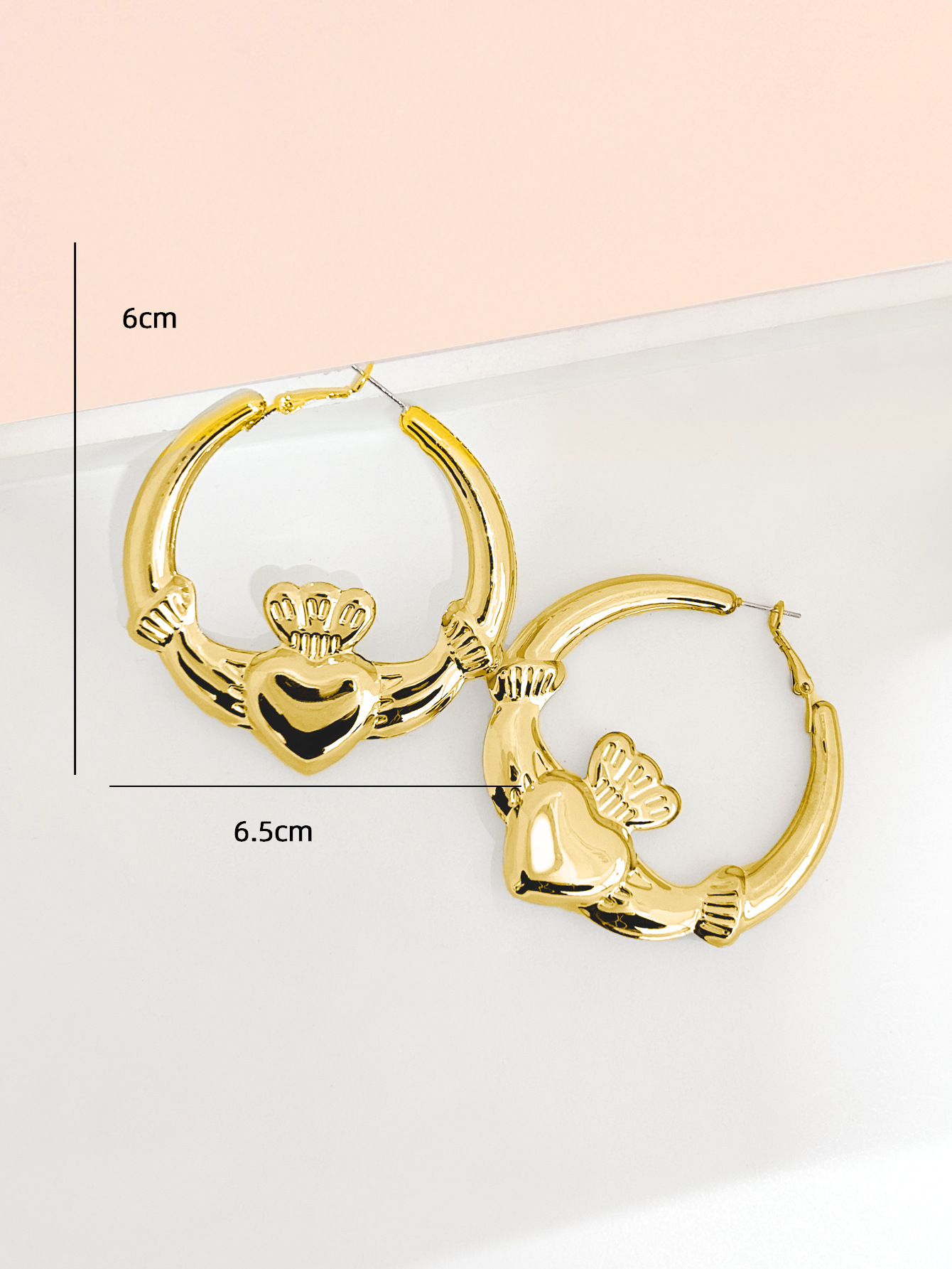 고급 프랑스 발렌타인 데이 간단한 황금 귀걸이 사랑 왕관 반지 귀걸이 휴일 음악 축제 귀걸이