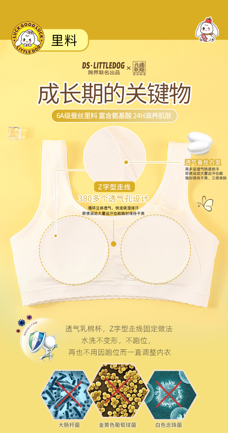 2단계 발달기 여학생 조끼형 모달 팬티, 돌출 방지 통기성 실크, 큰 여아 속옷, 발달기 속옷