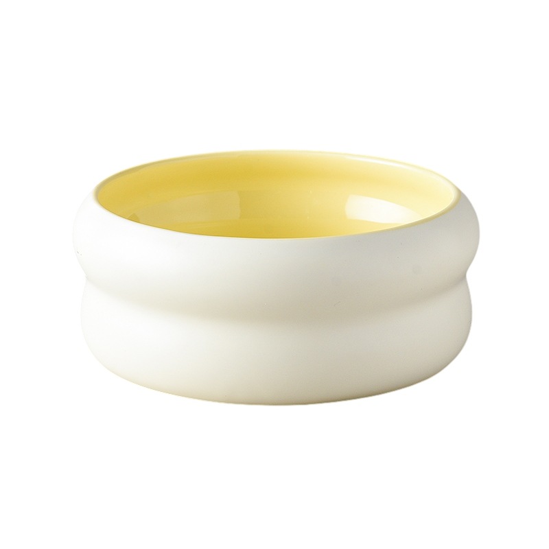 싱글 롤러 그릇-베이지 색 외부와 우유 노란색 내부